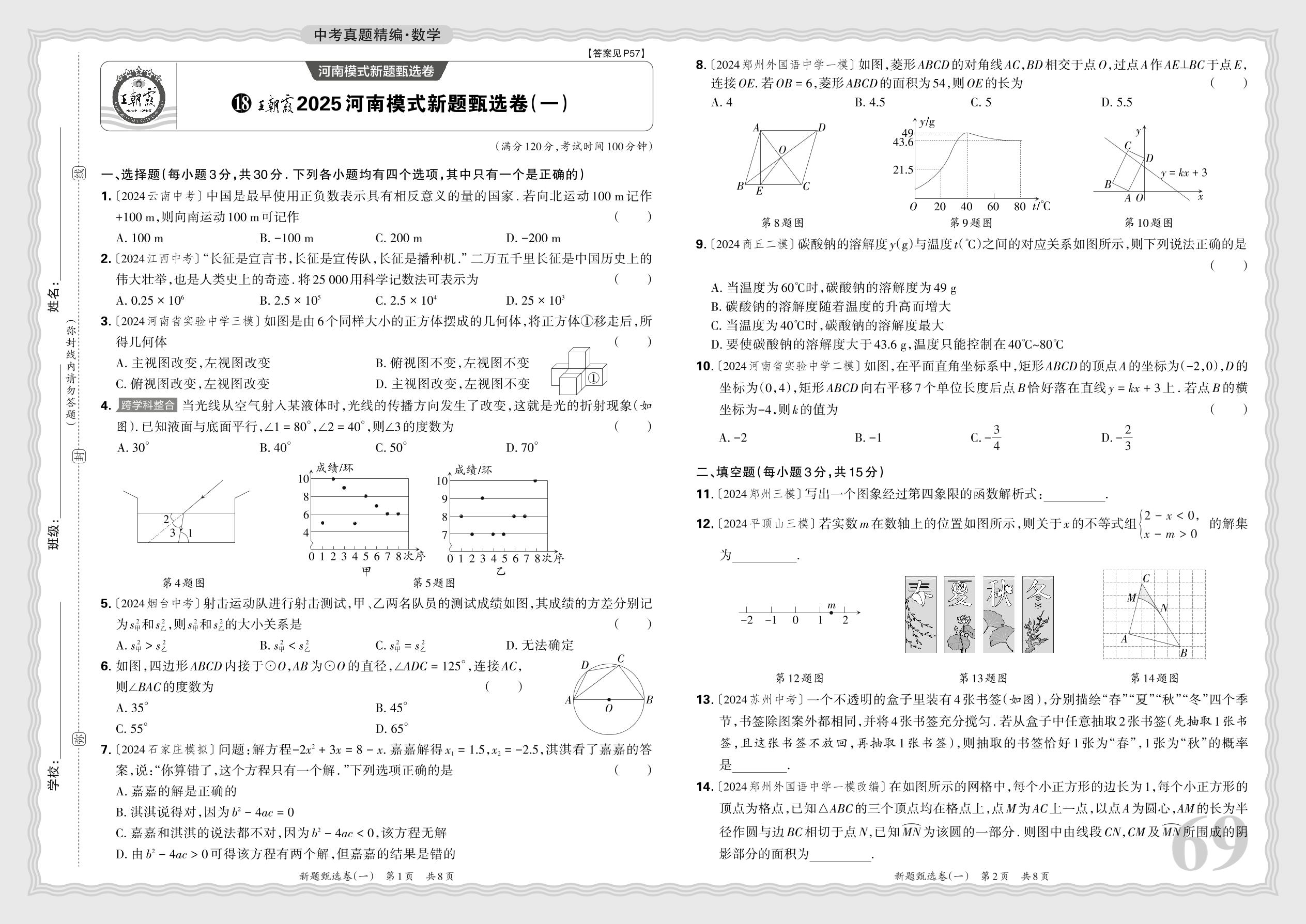 中考数学·王朝霞2025河南模式新题甄选卷(一)【18】
