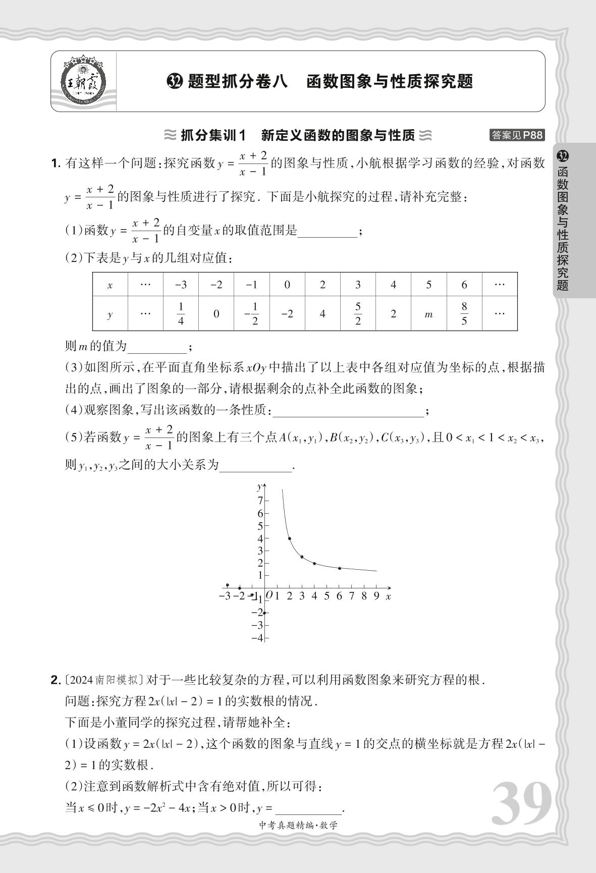 2025河南中考数学·题型抓分卷八 函数图象与性质探究题【32】
