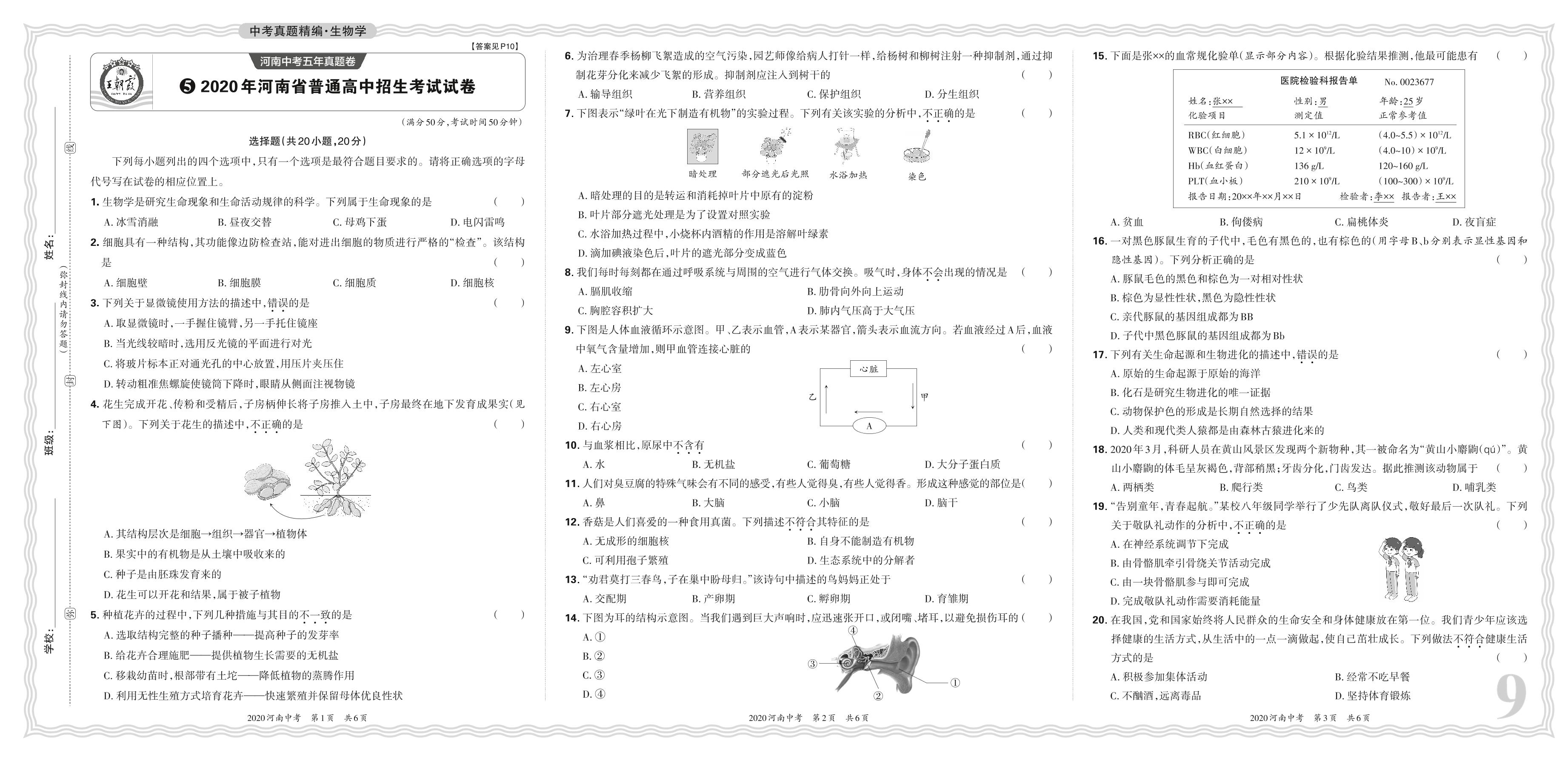 中考生物·2020年河南省普通高中招生考试试卷【5】