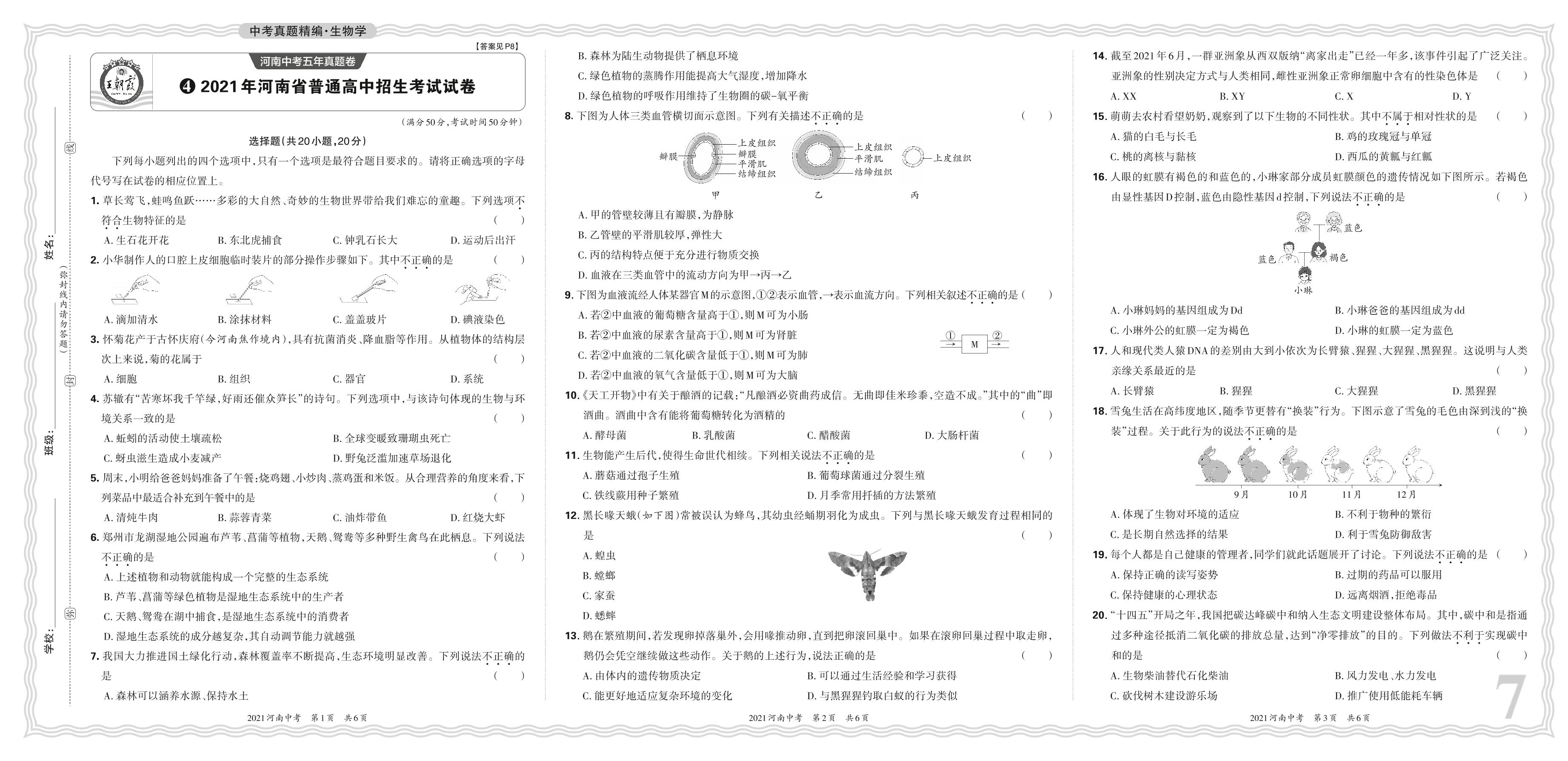 中考生物·2021年河南省普通高中招生考试试卷【4】