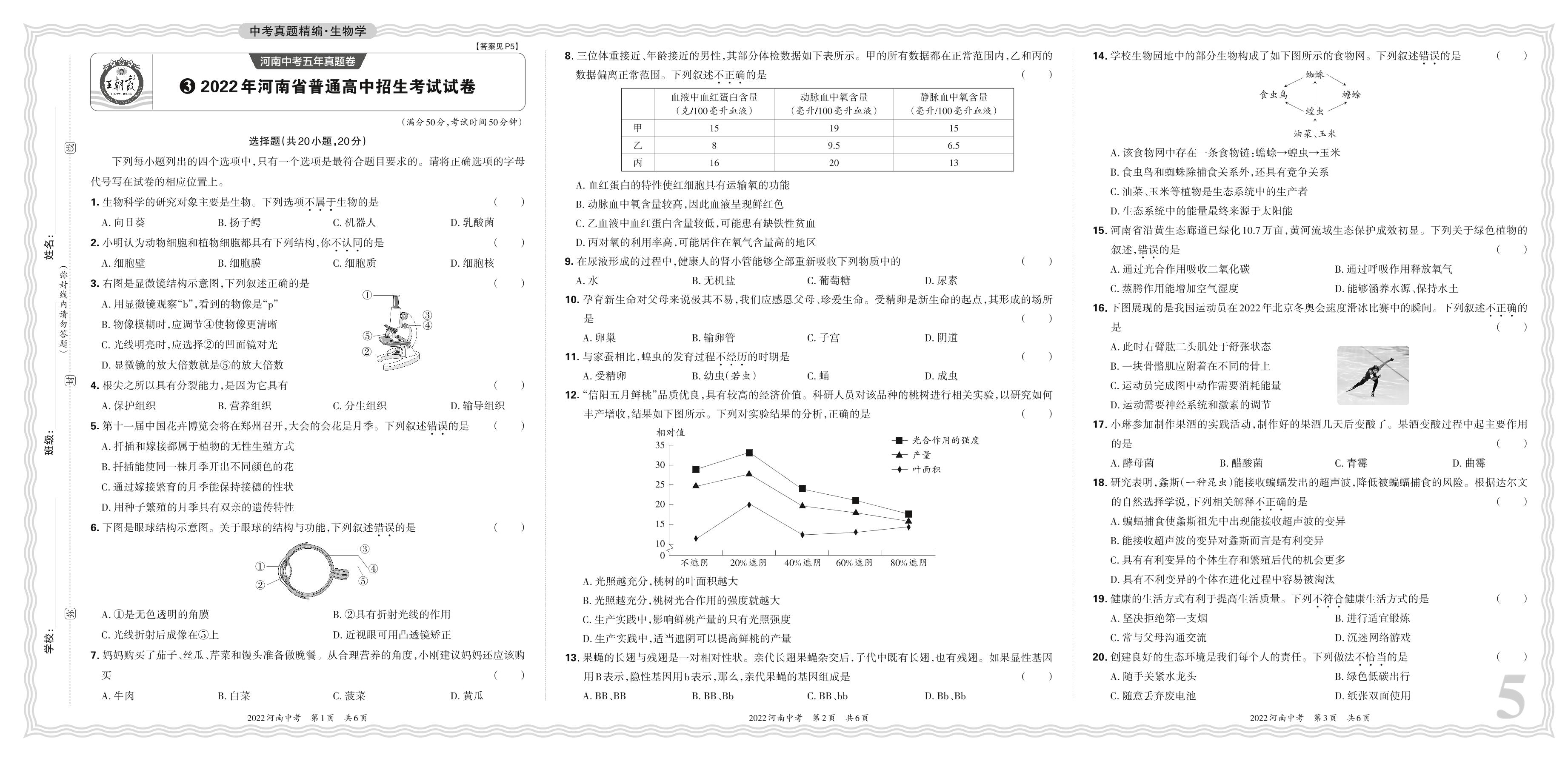 中考生物·2022年河南省普通高中招生考试试卷【3】