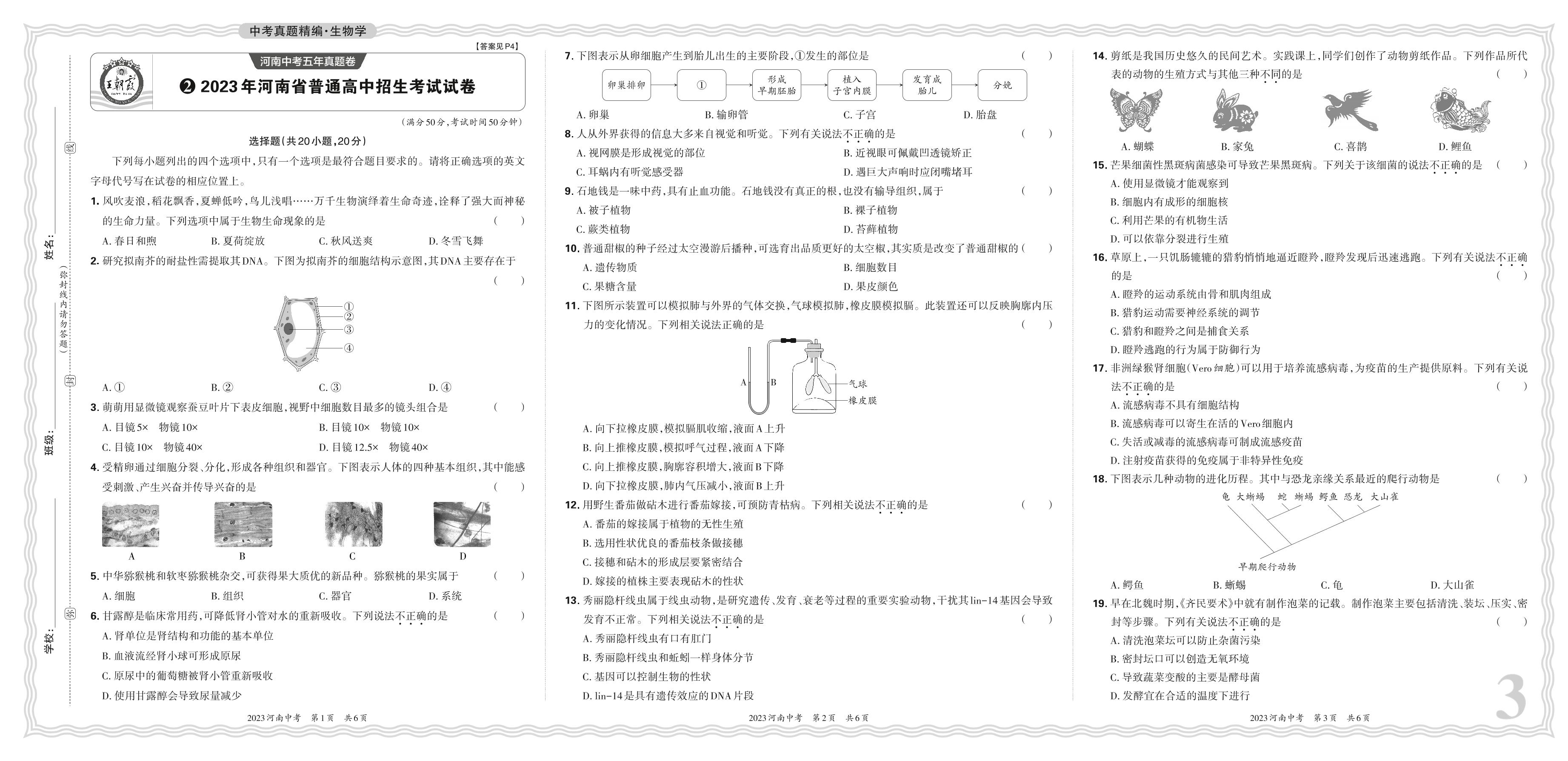中考生物·2023年河南省普通高中招生考试试卷【2】
