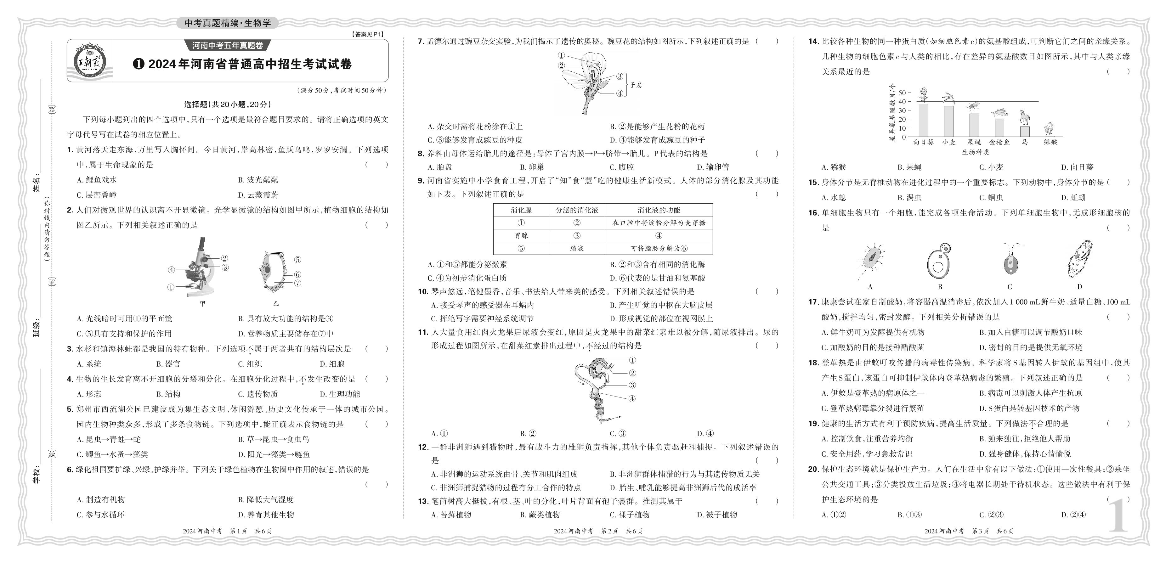 中考生物·2024年河南省普通高中招生考试试卷【1】