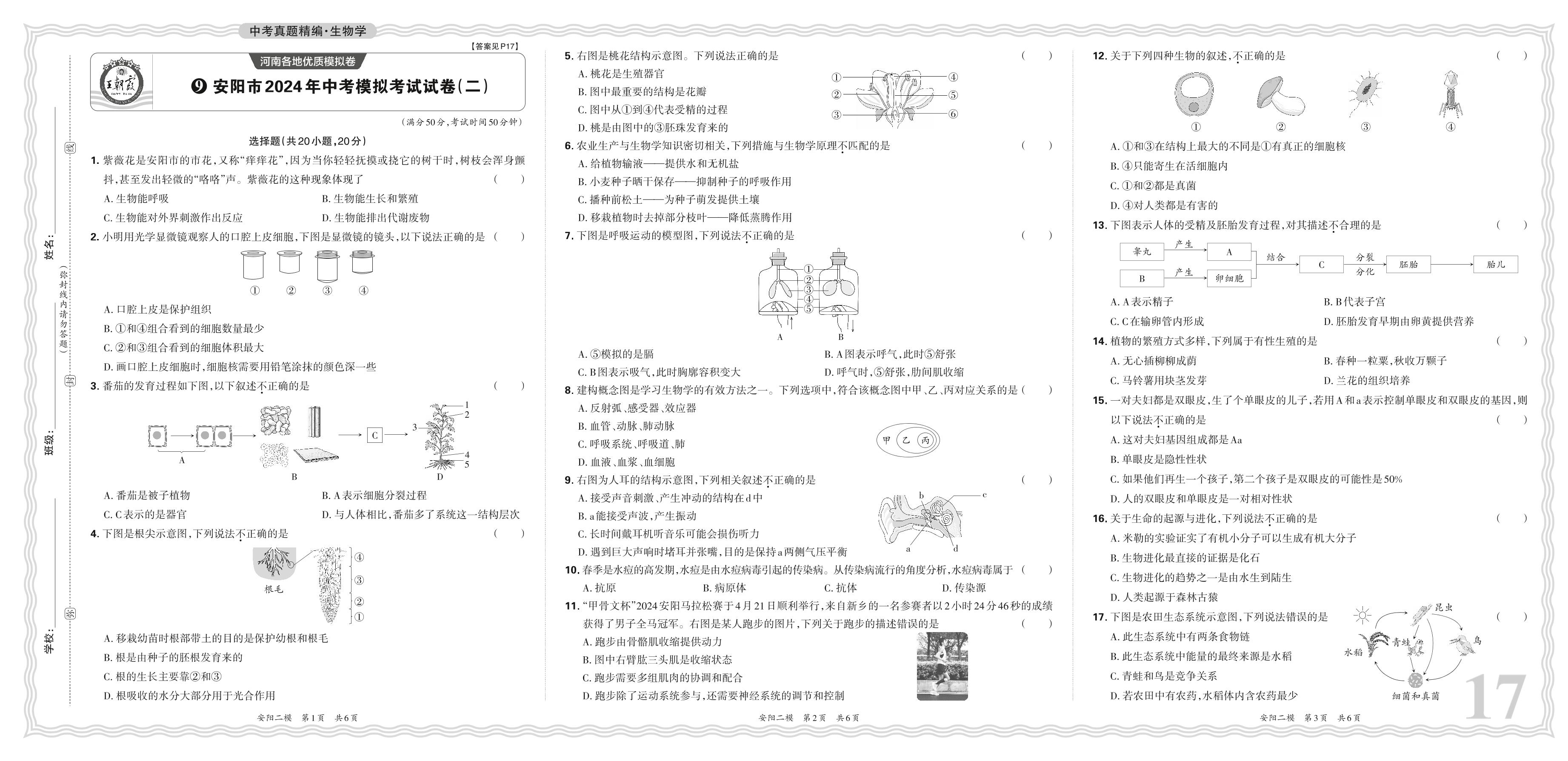 中考生物·河南省安阳市2024年中考模拟考试试卷(二)【9】