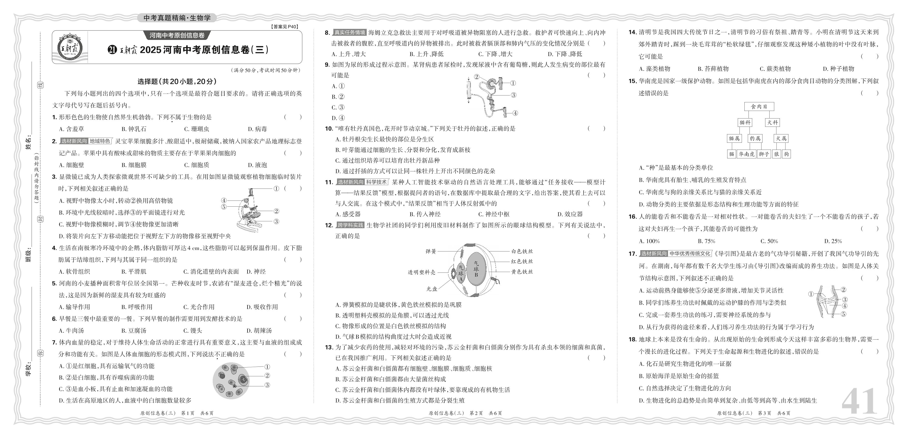 中考生物·王朝霞2025河南中考原创信息卷(三)【21】