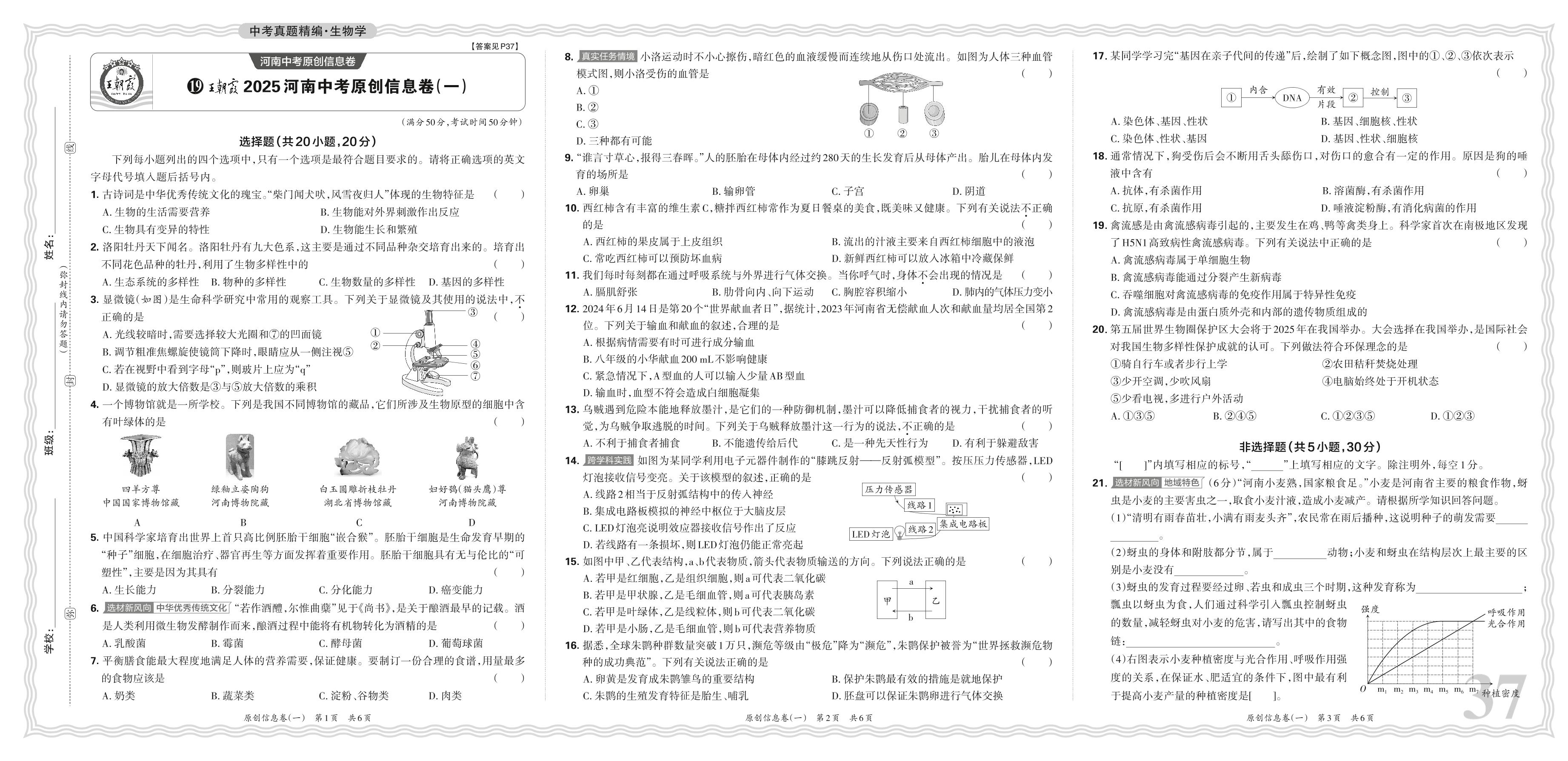 中考生物·王朝霞2025河南中考原创信息卷(一)【19】