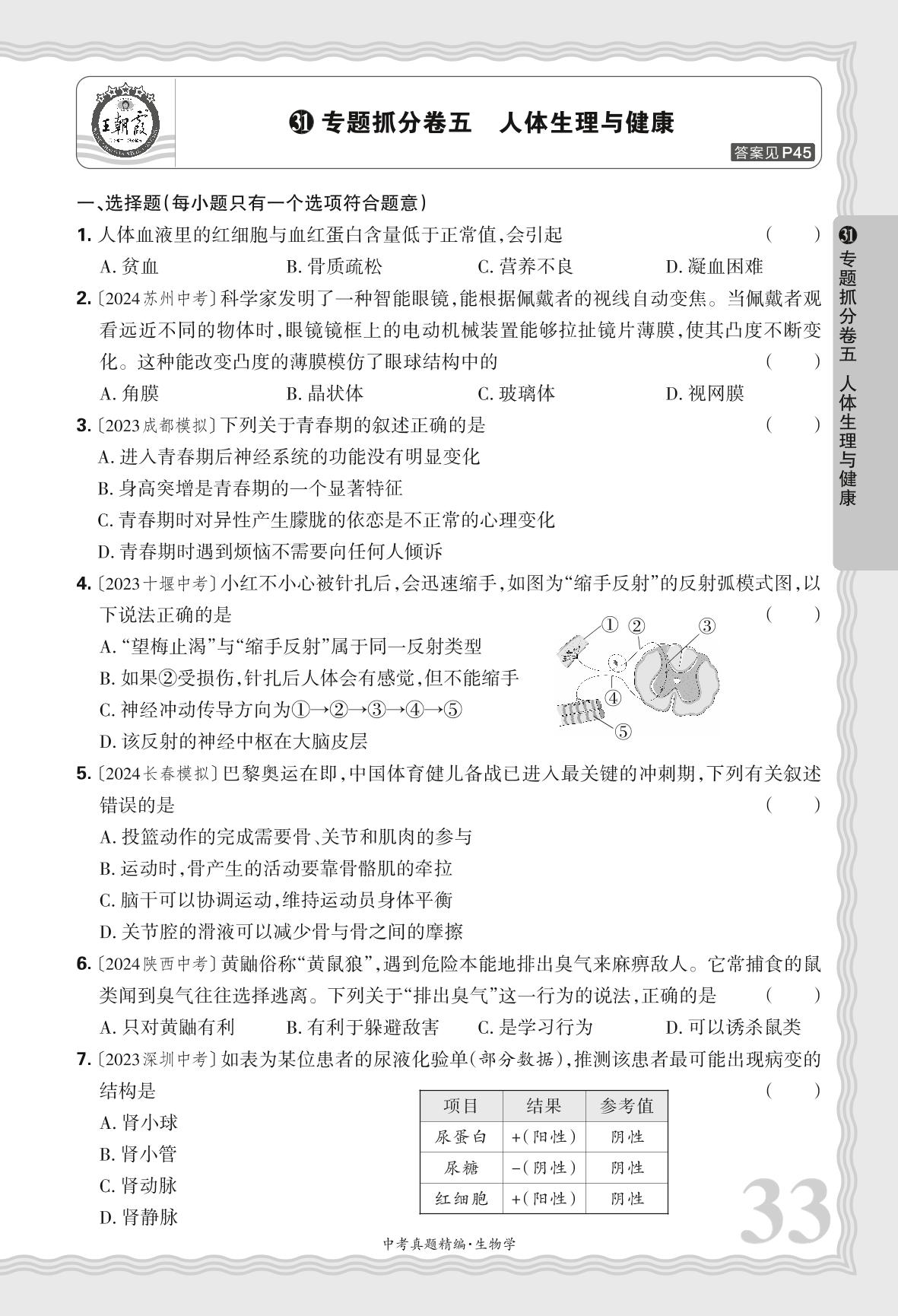 2025河南中考生物·专题抓分卷五 人体生理与健康【31】