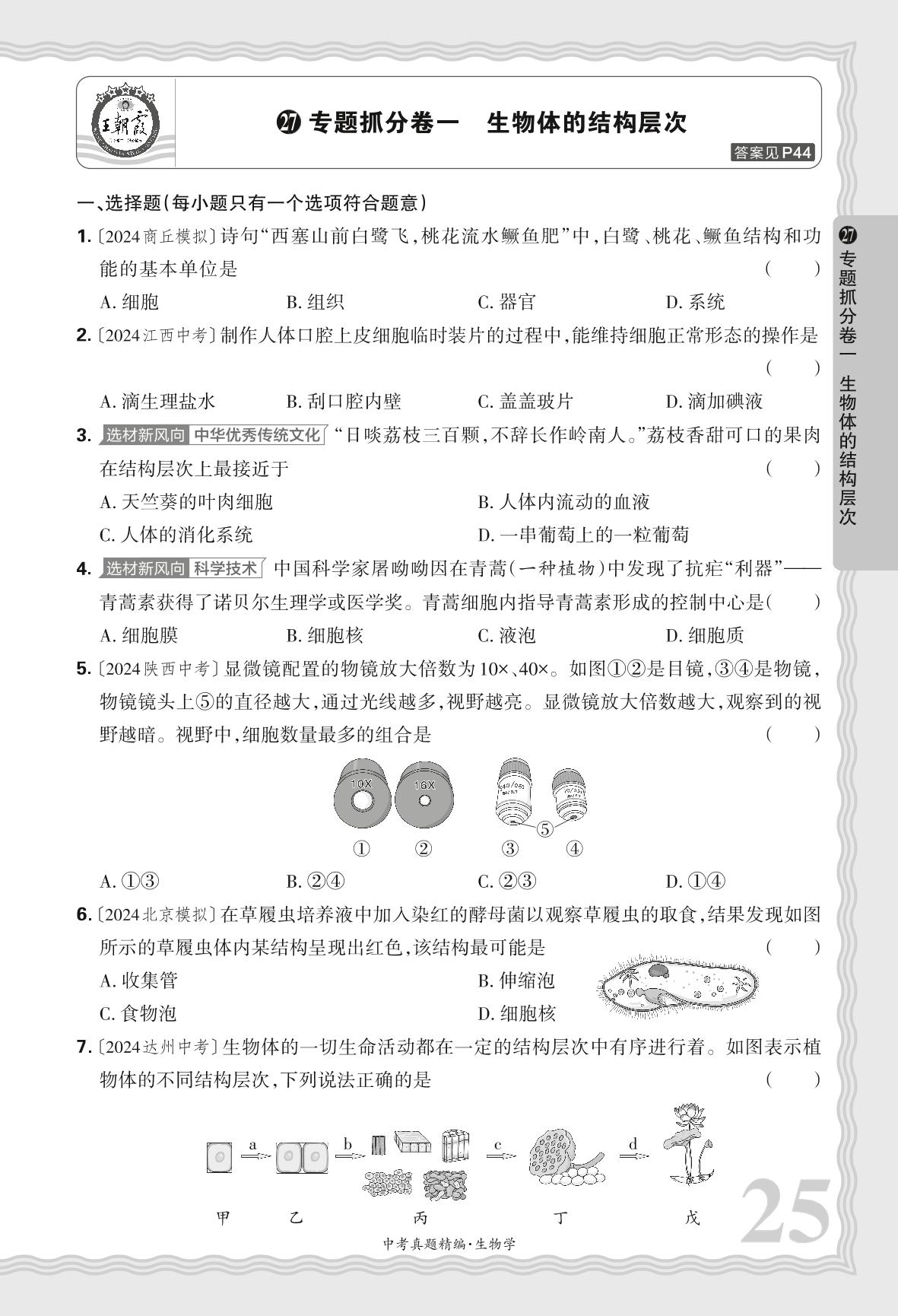 2025河南中考生物·专题抓分卷一 生物体的结构层次【27】