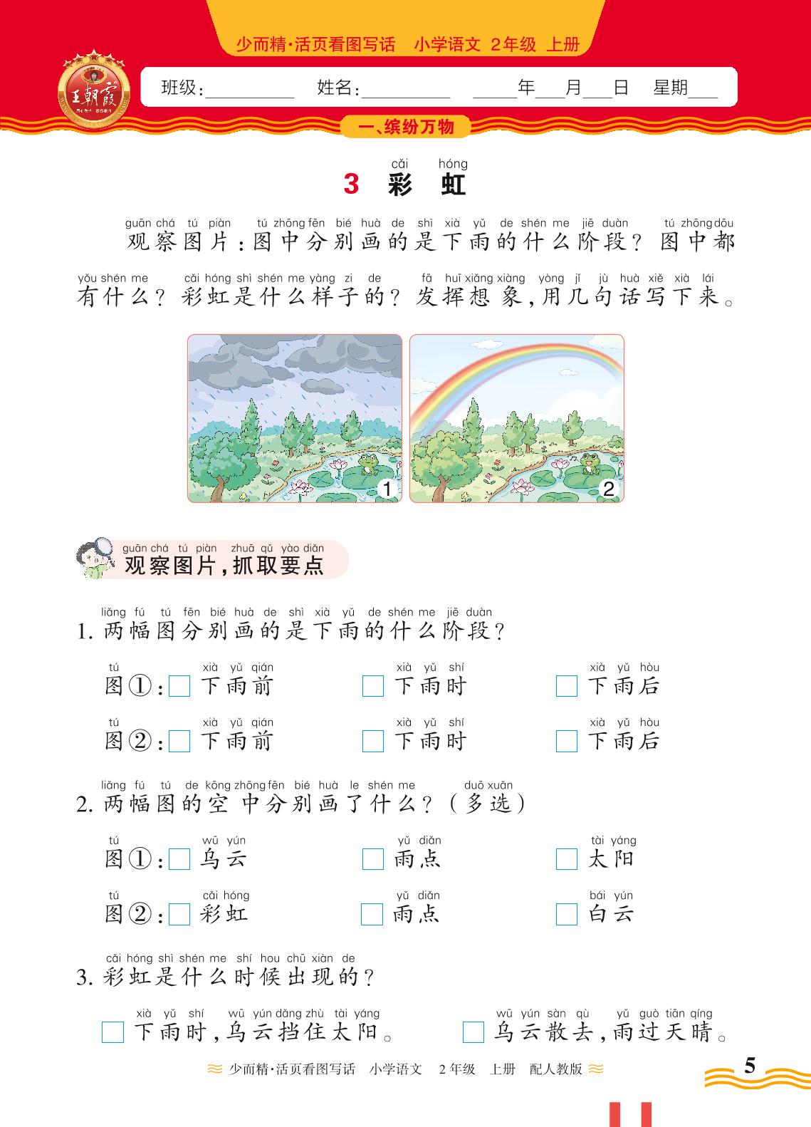 2024秋上册二年级语文人教版 看图写话一 缤纷万物——3. 彩虹