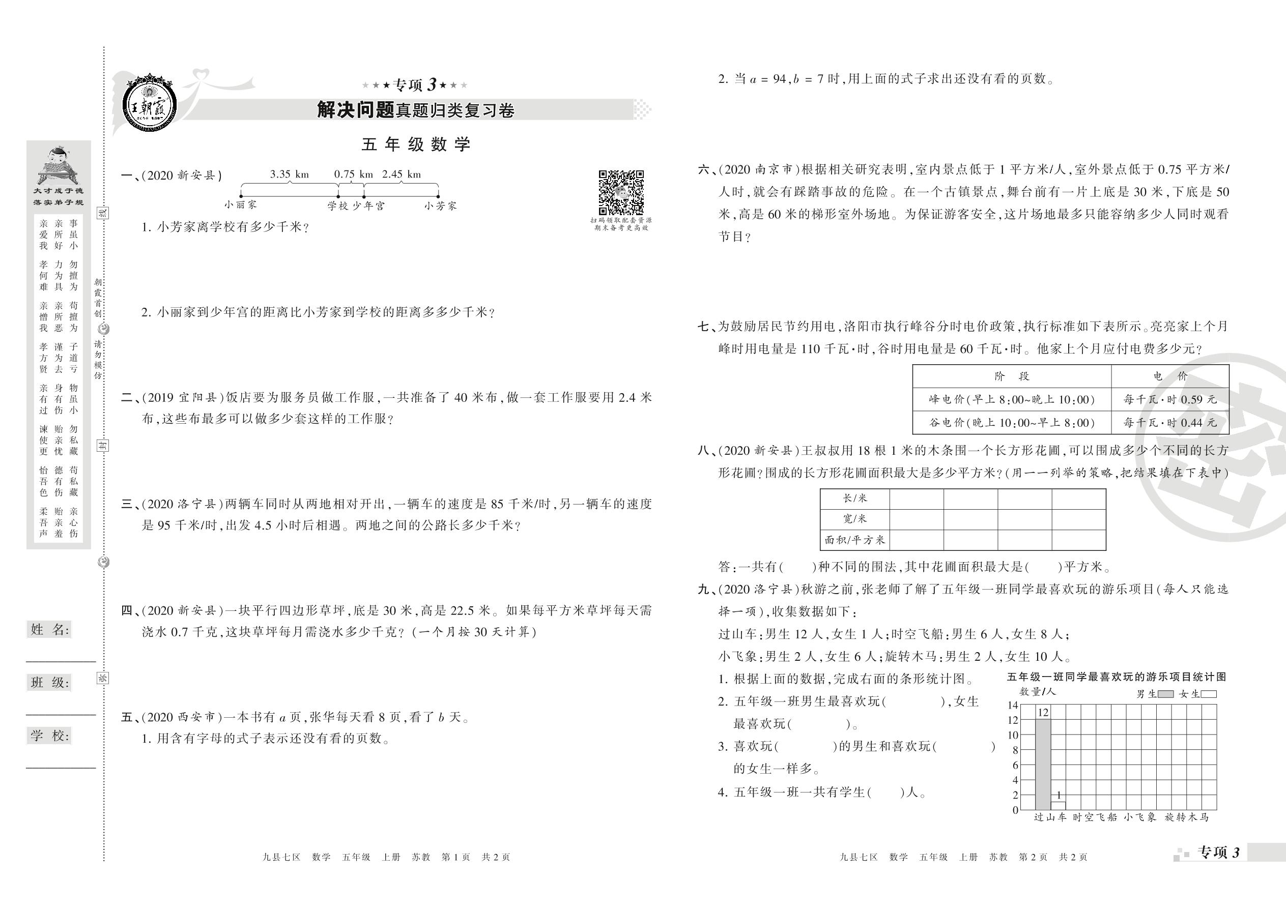 王朝霞期末专项卷——解决问题真题归类复习、新颖题速递:生活与数学五年级上册数学(苏教版)【0】
