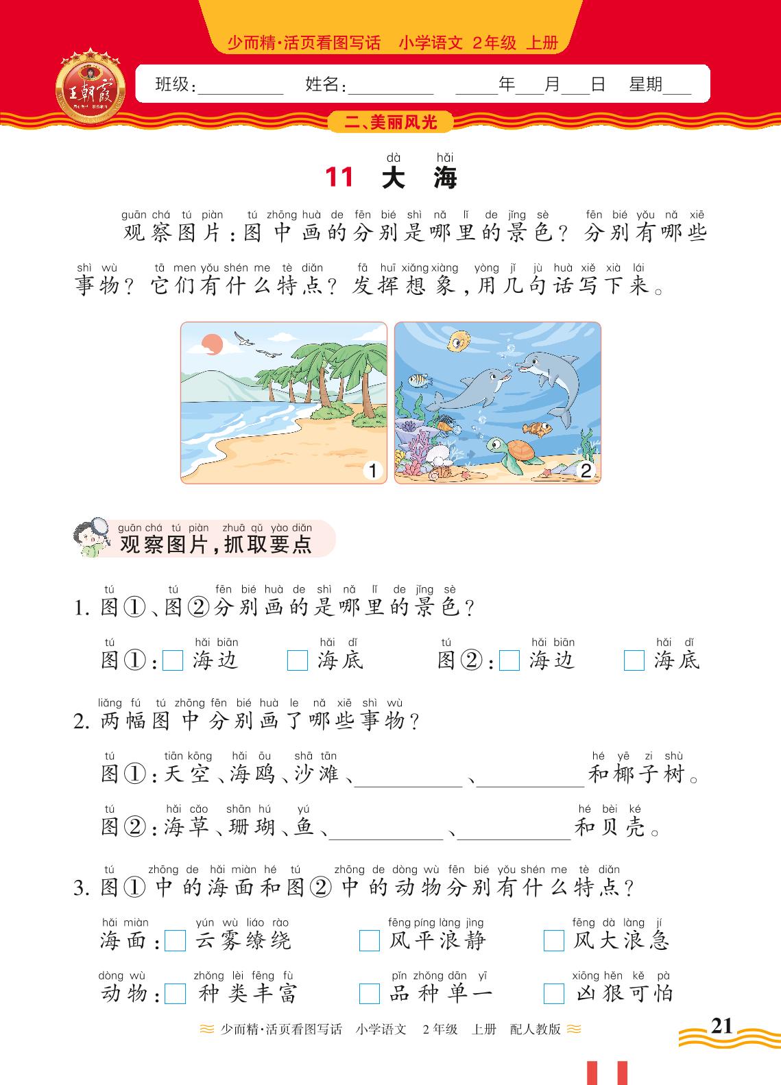 2024秋上册二年级语文人教版 看图写话二 美丽风光——11. 大海