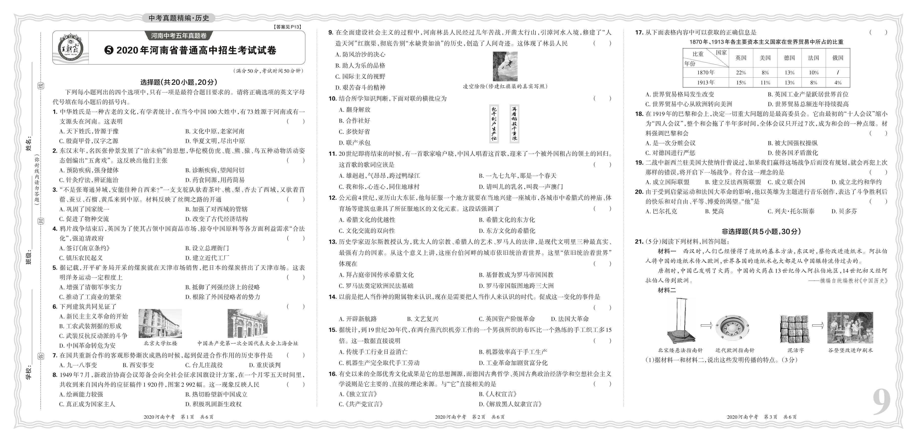 中考历史·2020河南省普通高中招生考试试卷【5】