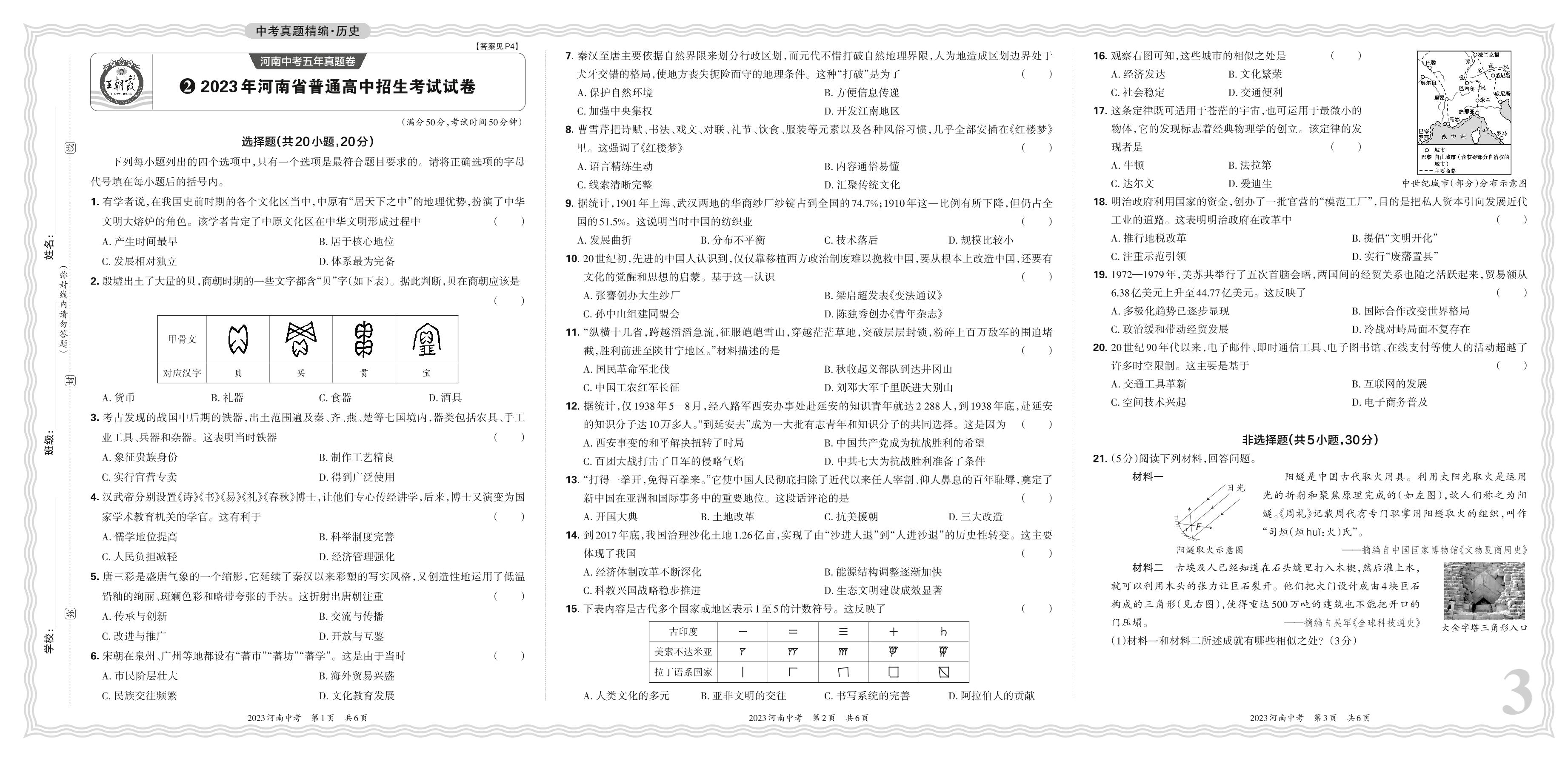 中考历史·2023河南省普通高中招生考试试卷【2】