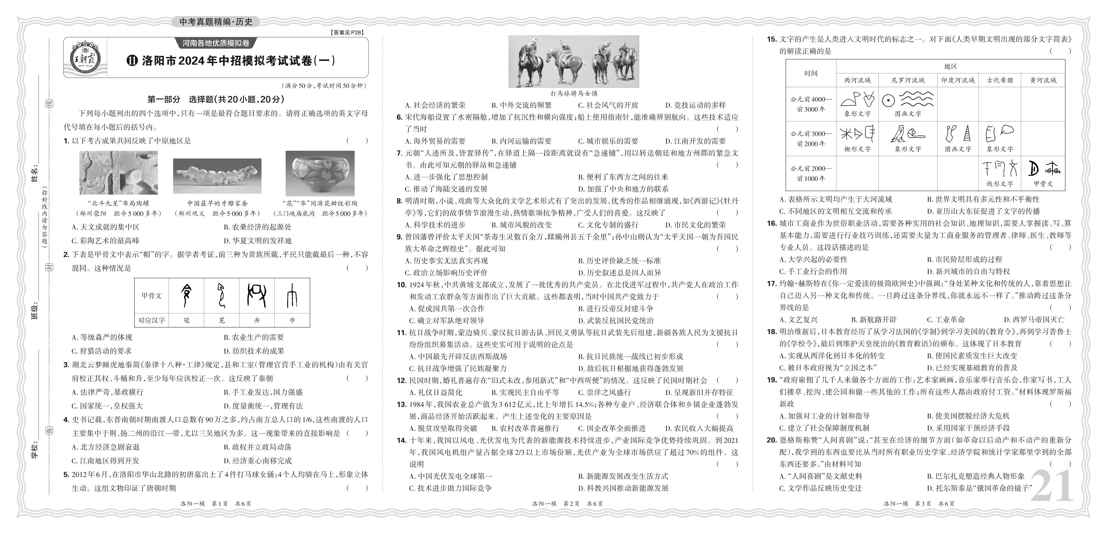 中考历史·河南省洛阳市2024年中招模拟考试试卷(一)【11】