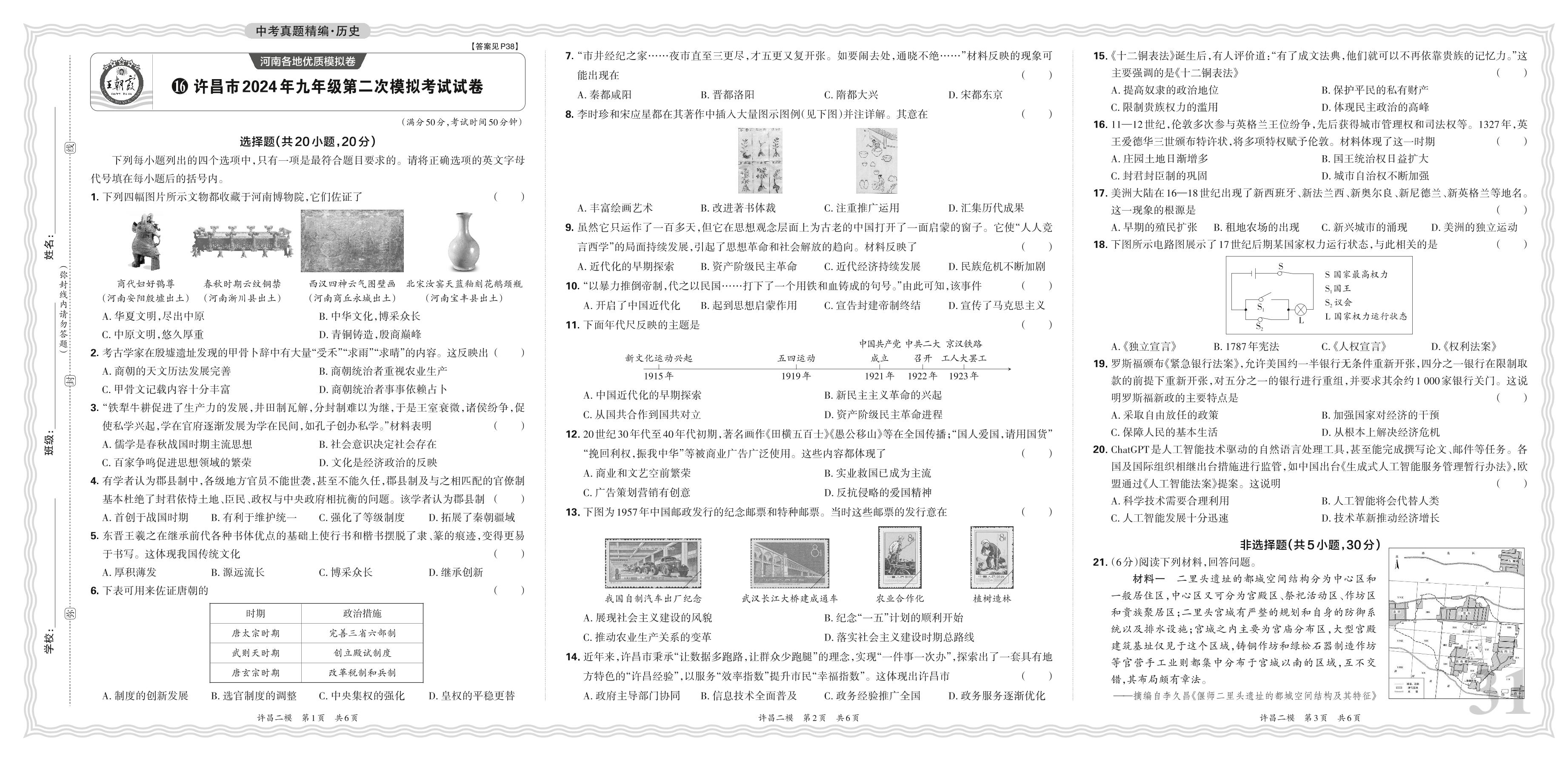 中考历史·河南省许昌市2024年九年级第二次模拟考试试卷【16】