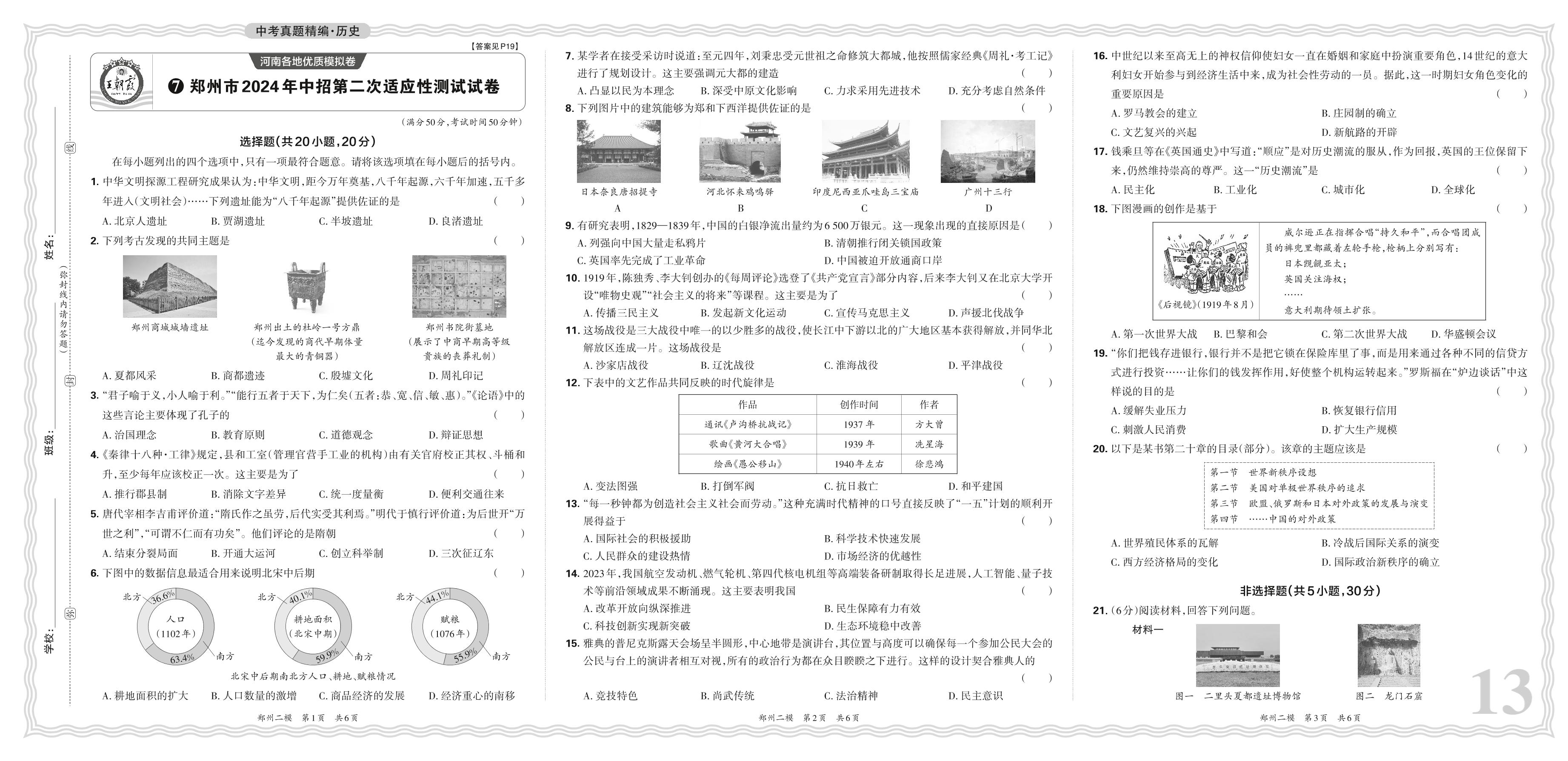 中考历史·河南省郑州市2024年中招第二次适应性测试试卷【7】