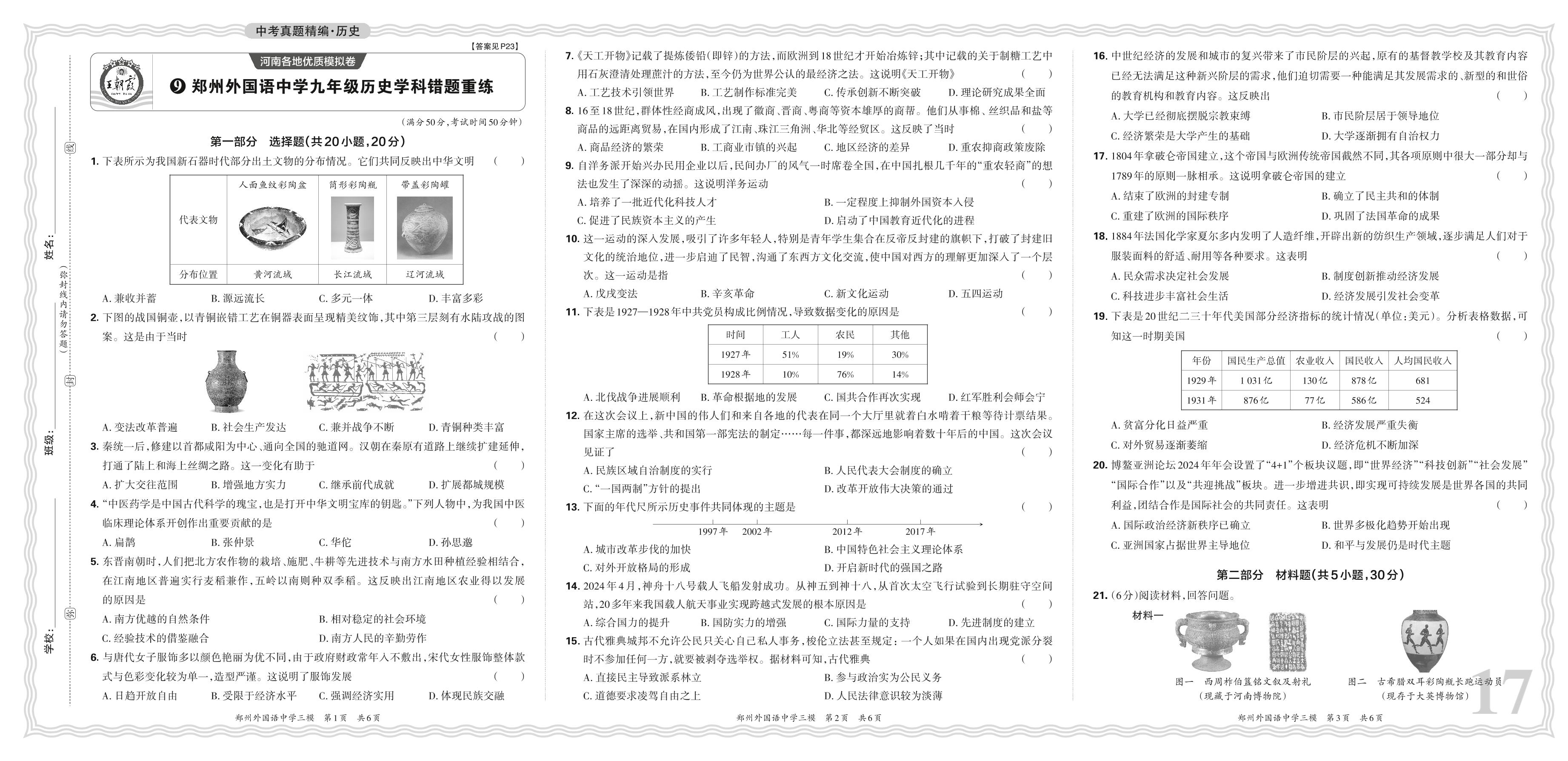 中考历史·郑州外国语中学九年级历史学科错题重练【9】