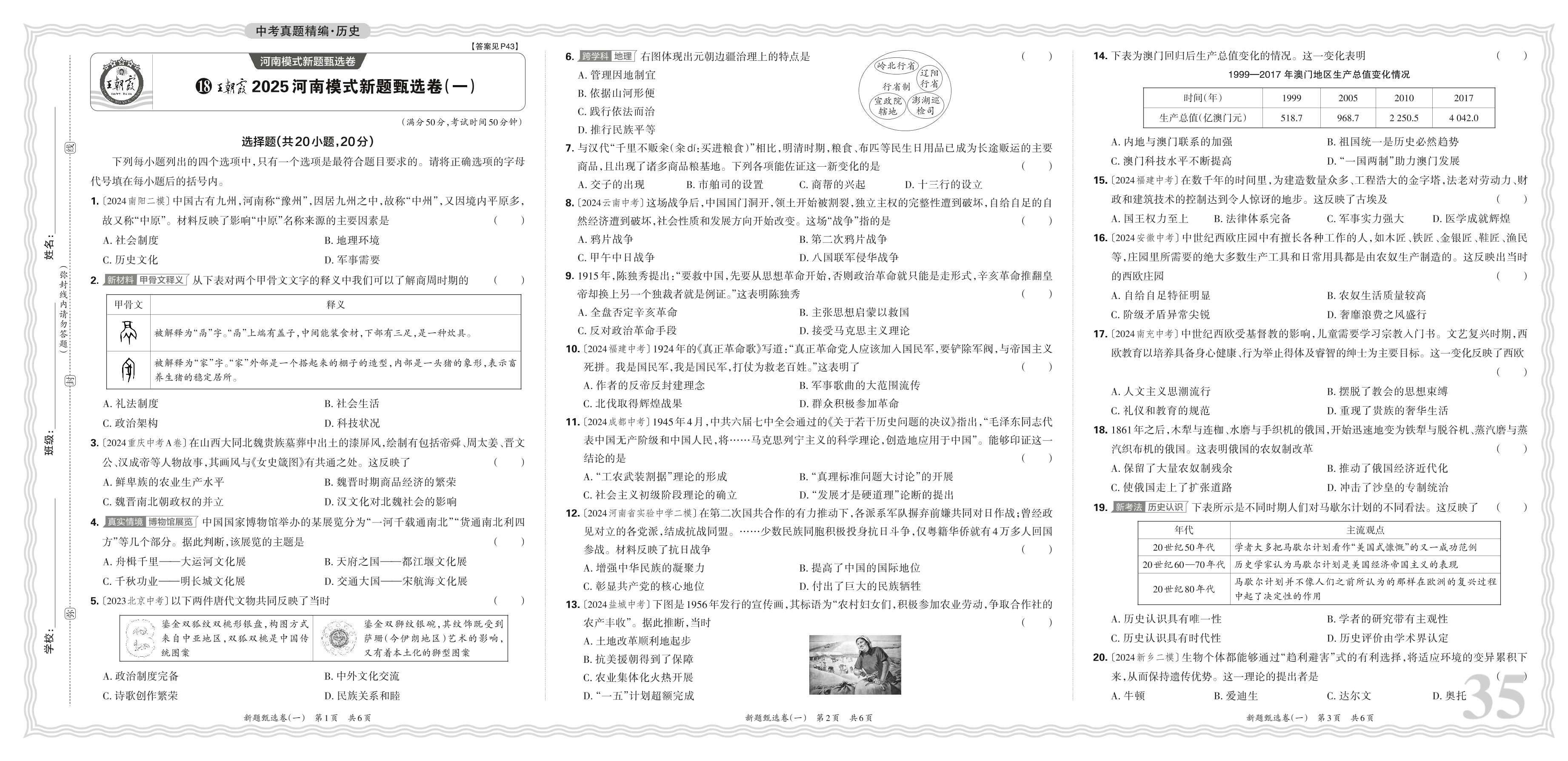中考历史·王朝霞2025河南模式新题甄选卷(一)【18】