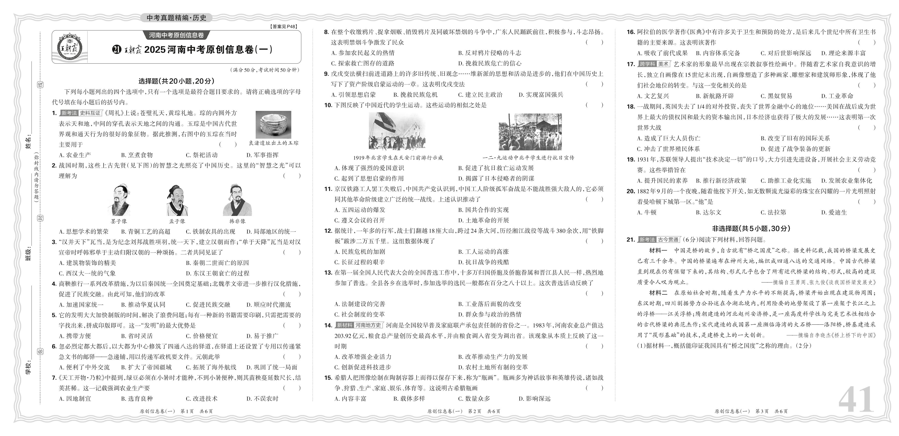 中考历史·王朝霞2025河南中考原创信息卷(一)【21】