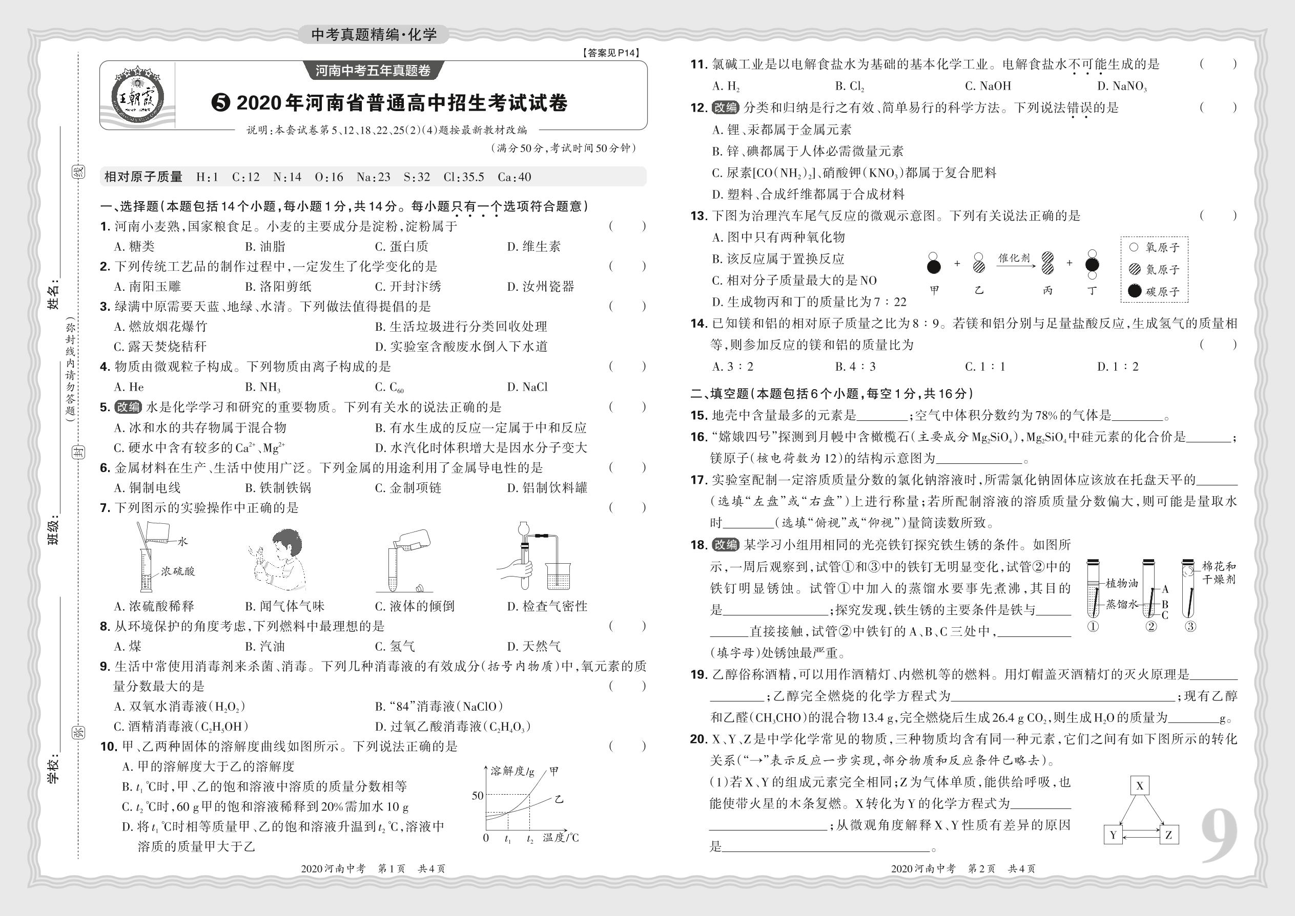 中考化学·2020年河南省普通高中招生考试试卷【5】