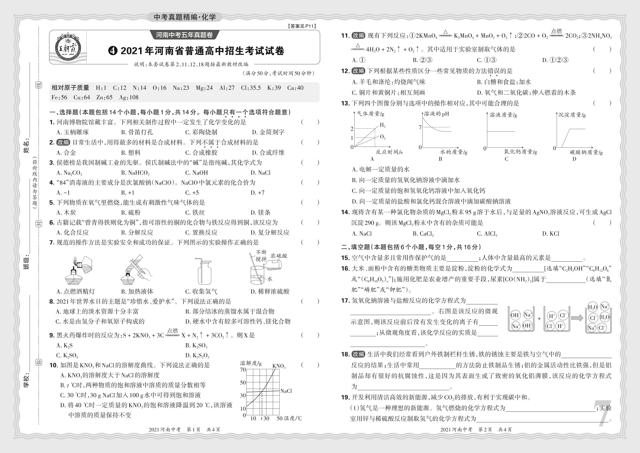 中考化学·2021年河南省普通高中招生考试试卷【4】