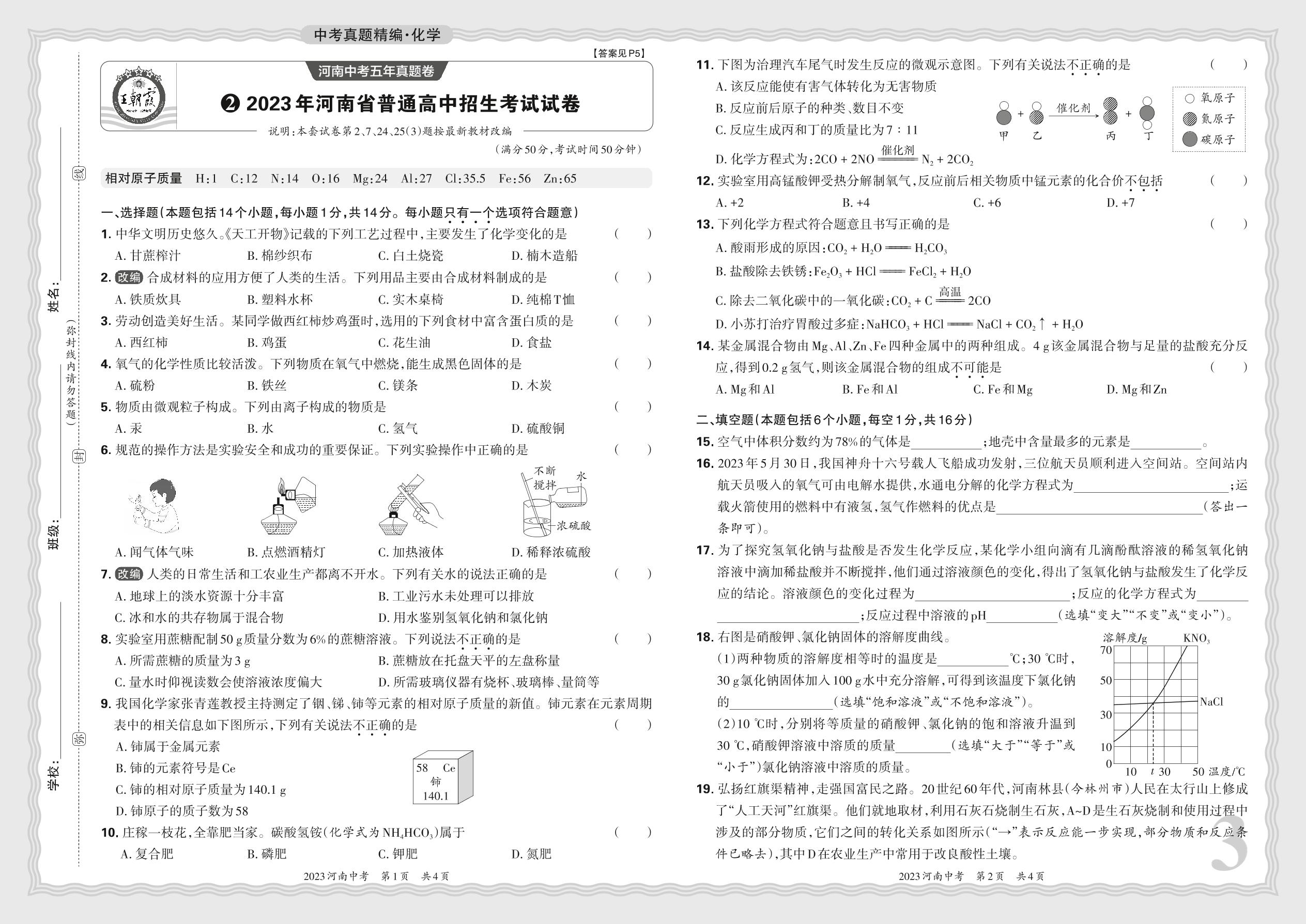 中考化学·2023年河南省普通高中招生考试试卷【2】