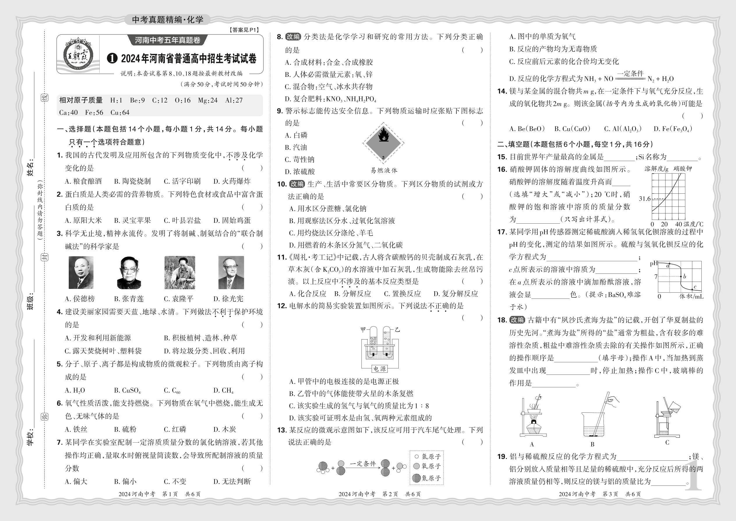 中考化学·2024年河南省普通高中招生考试试卷【1】