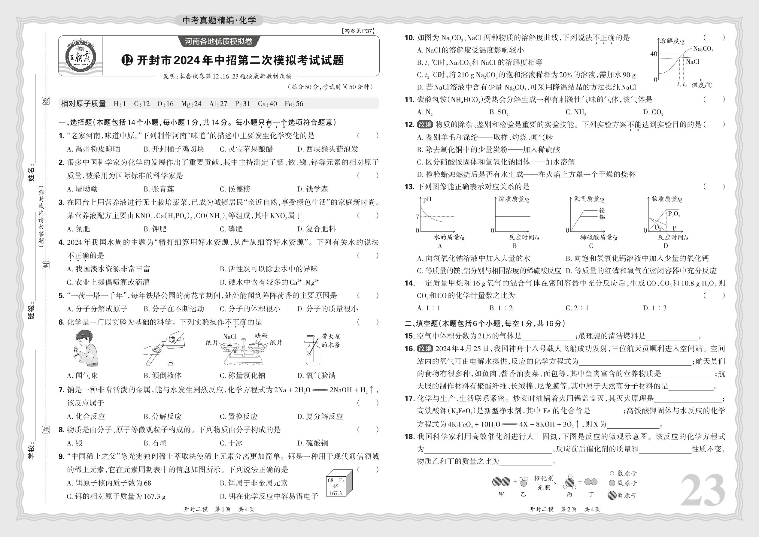 中考化学·河南省开封市2024年中招第二次模拟考试试题【12】