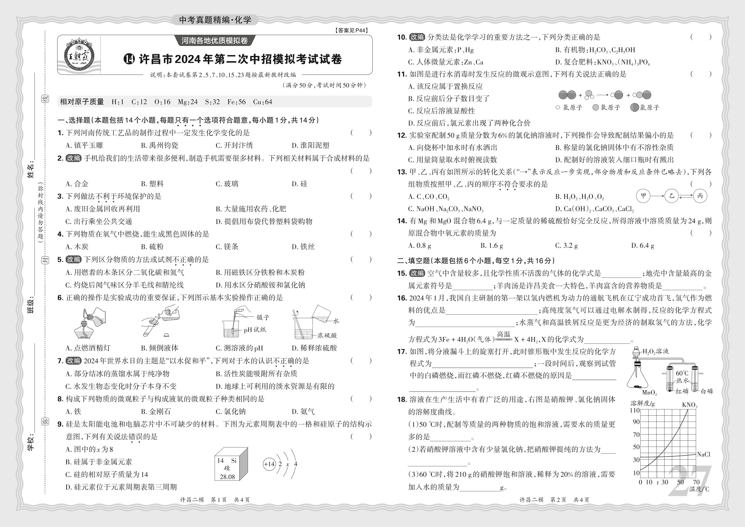 中考化学·河南省许昌市2024年第二次中招模拟考试试卷【14】