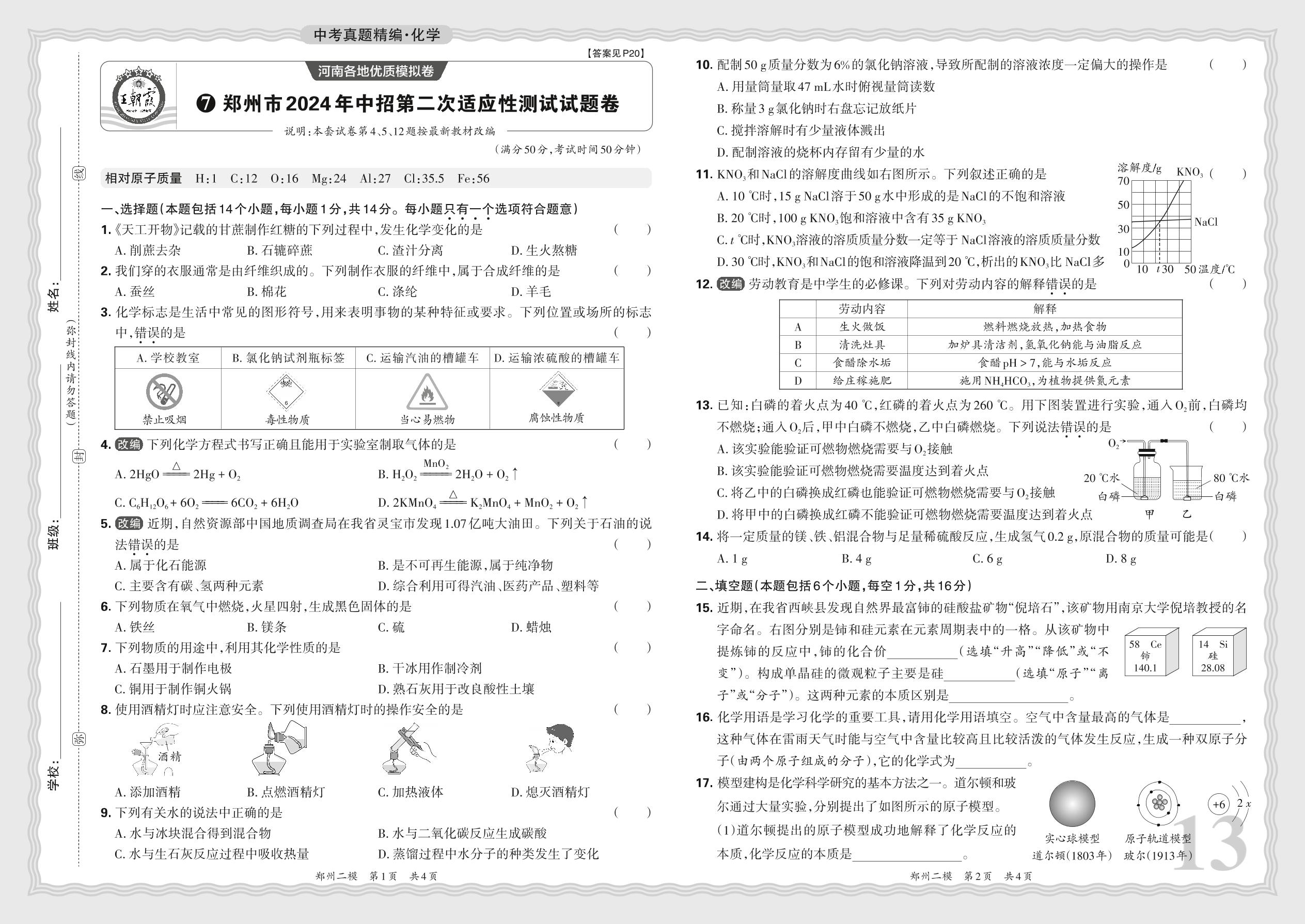 中考化学·河南省郑州市2024年中招第二次适应性测试试题卷【7】