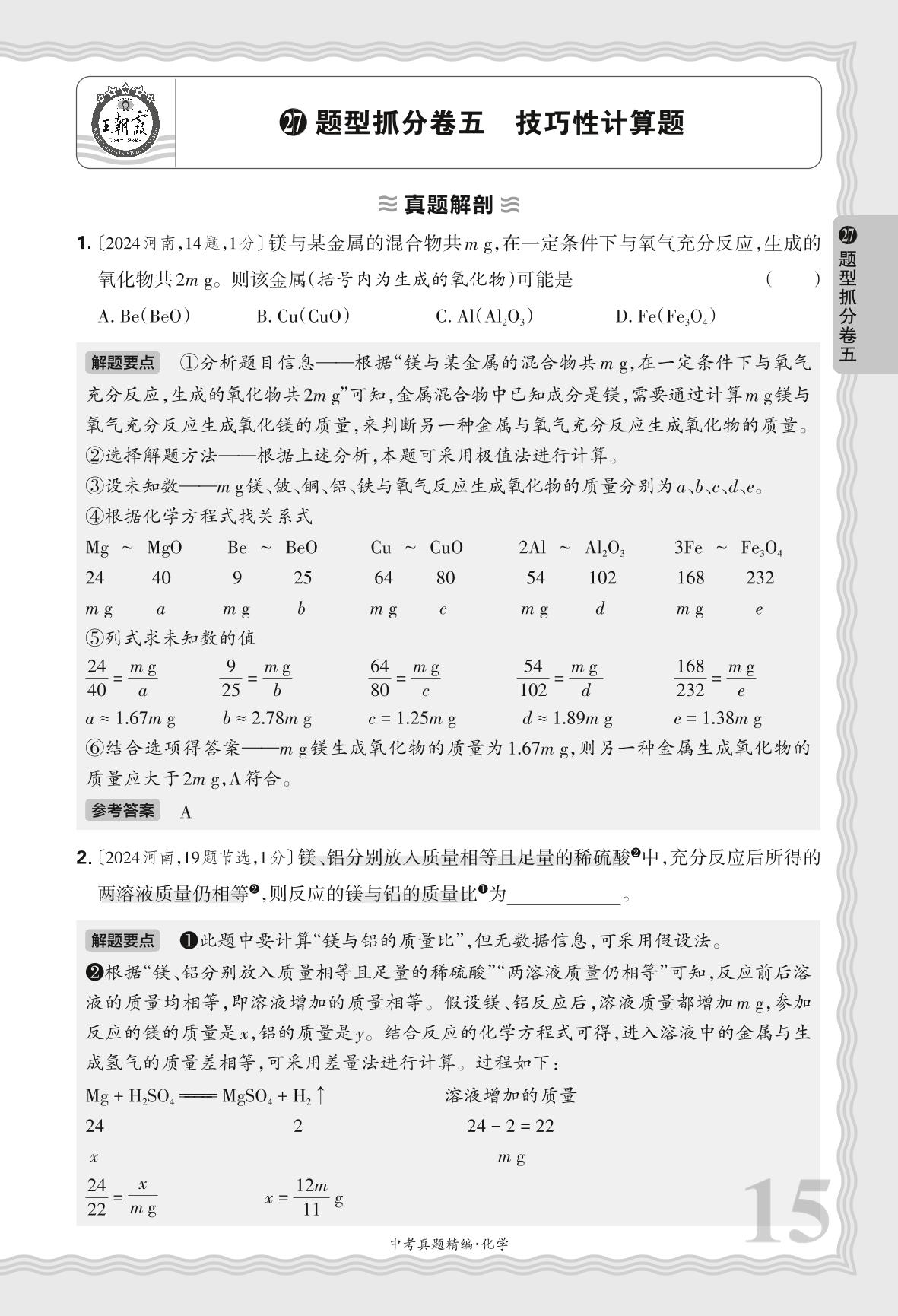 2025河南中考化学·题型抓分卷五 技巧性计算题【27】
