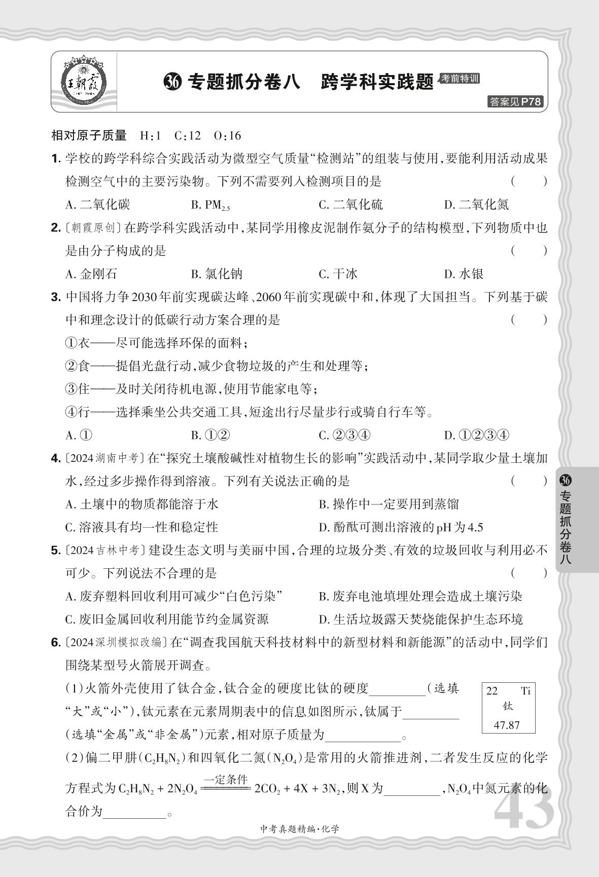 2025河南中考化学·专题抓分卷八 跨学科实践题【36】