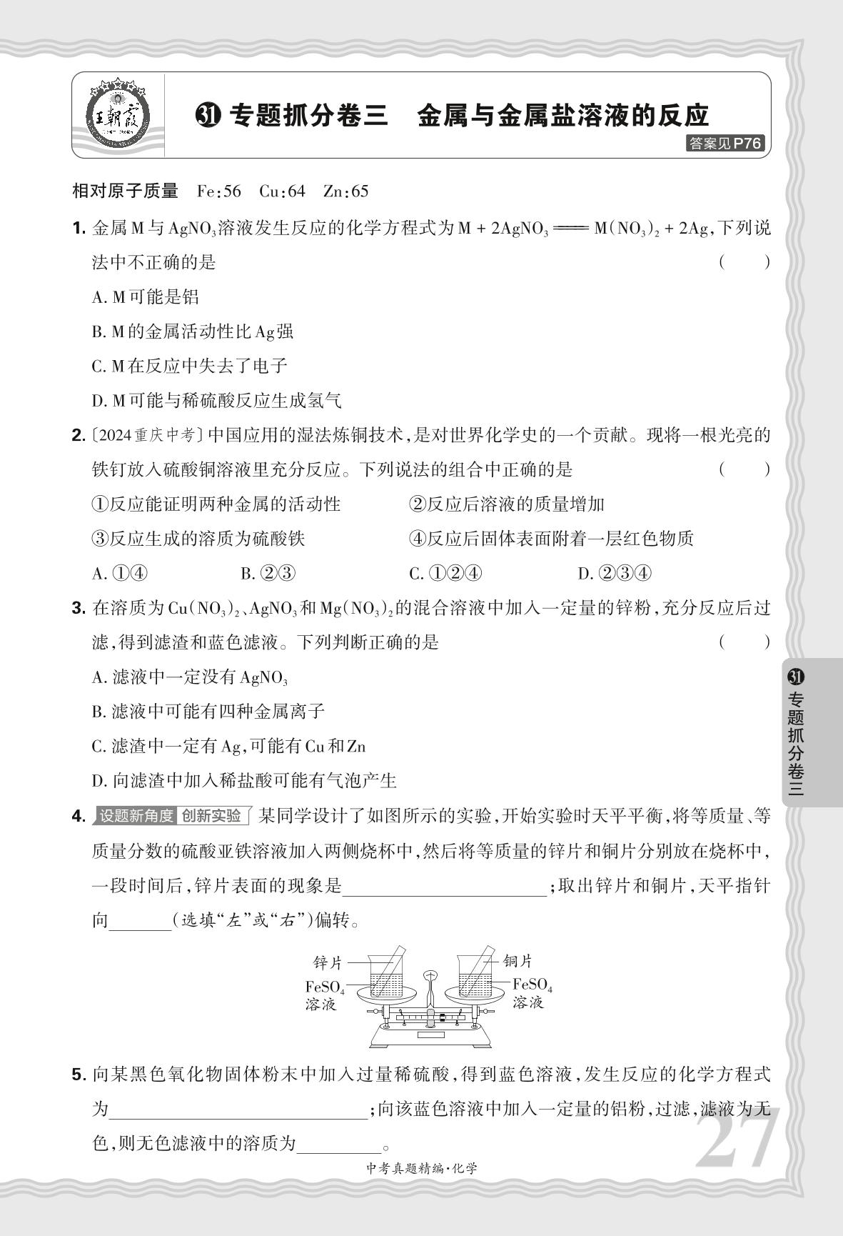 2025河南中考化学·专题抓分卷三 金属与金属盐溶液的反应【31】