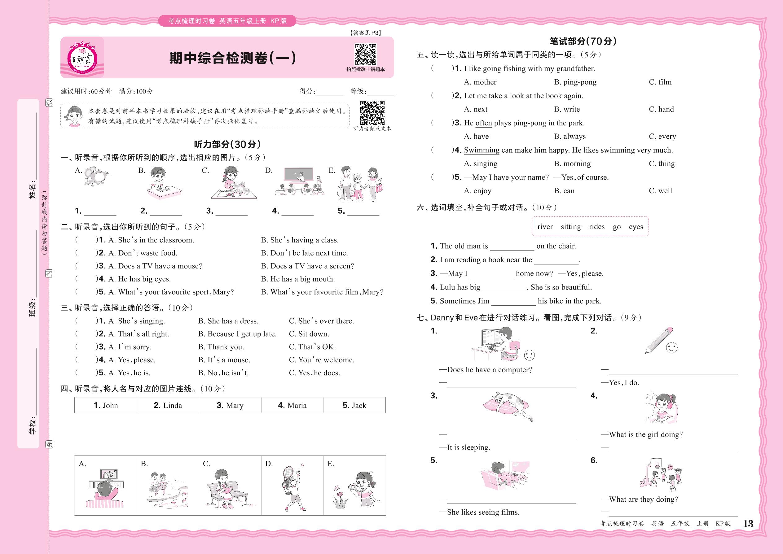 2024秋上册五年级英语科普版 期中综合检测卷(一)