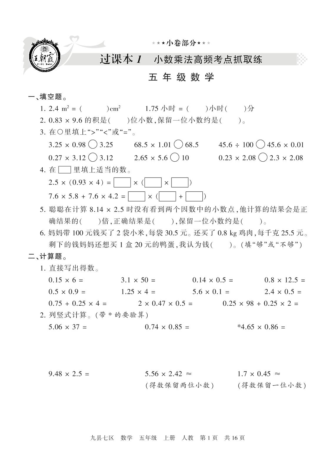 王朝霞期末过课本五年级上册数学(人教版)【0】