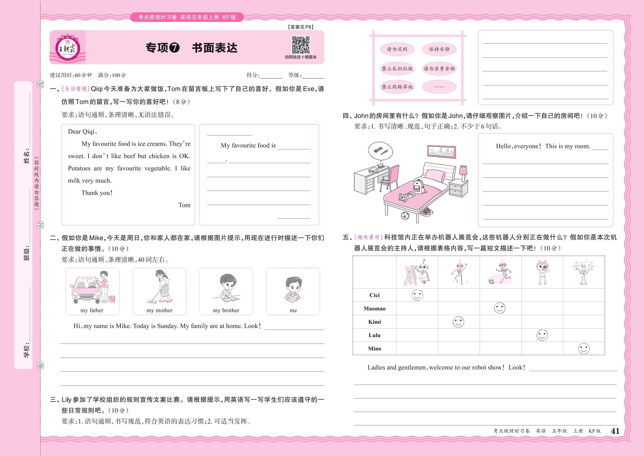 2024秋上册五年级英语科普版 期末专项卷KD版·书面表达【7】