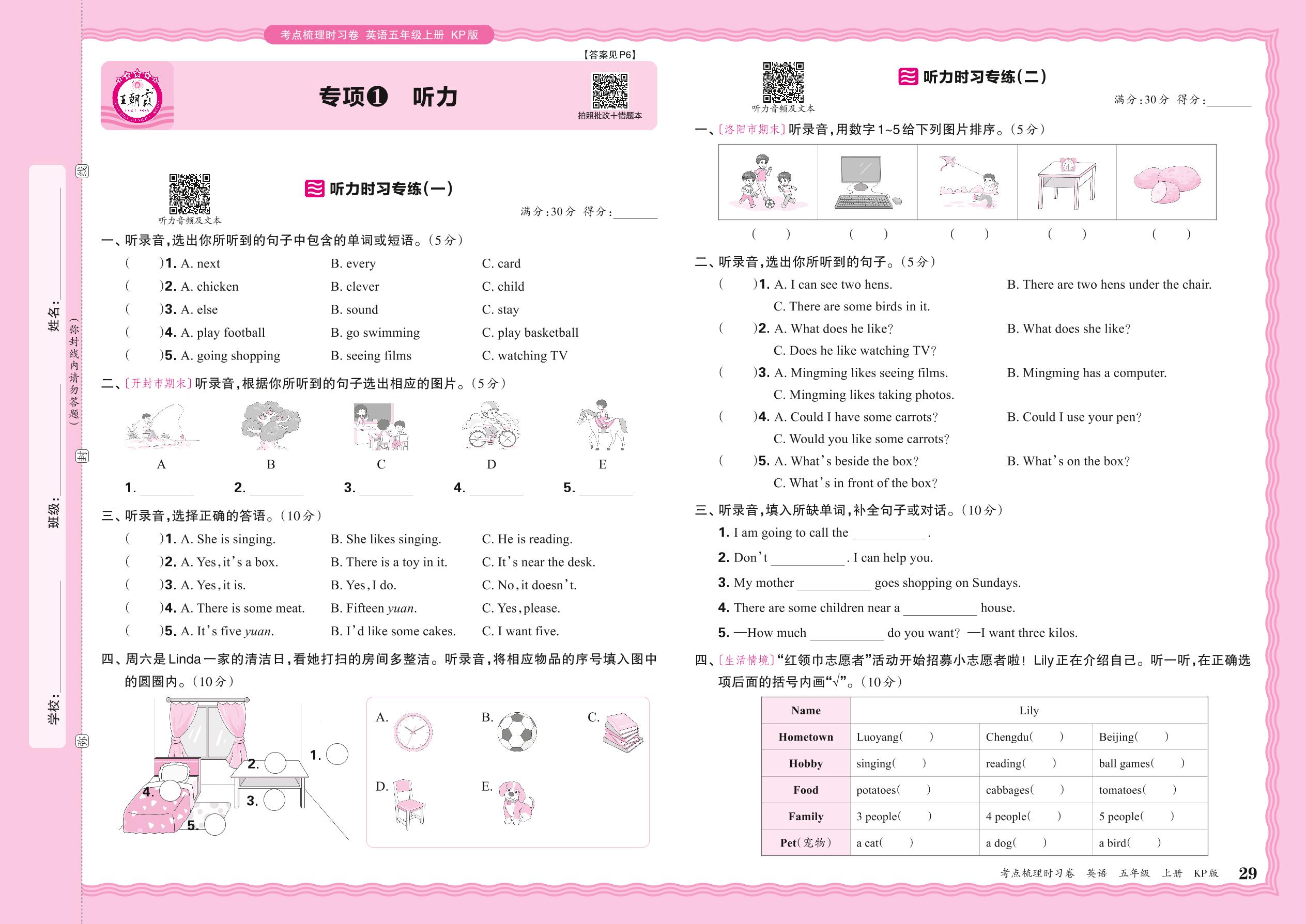 2024秋上册五年级英语科普版 期末专项卷KD版·听力【1】