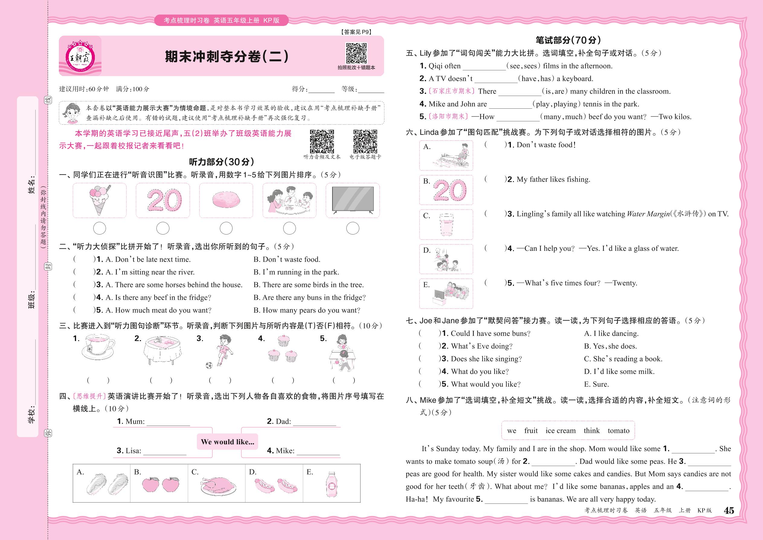 2024秋上册五年级英语科普版 期末冲刺夺分卷(二)
