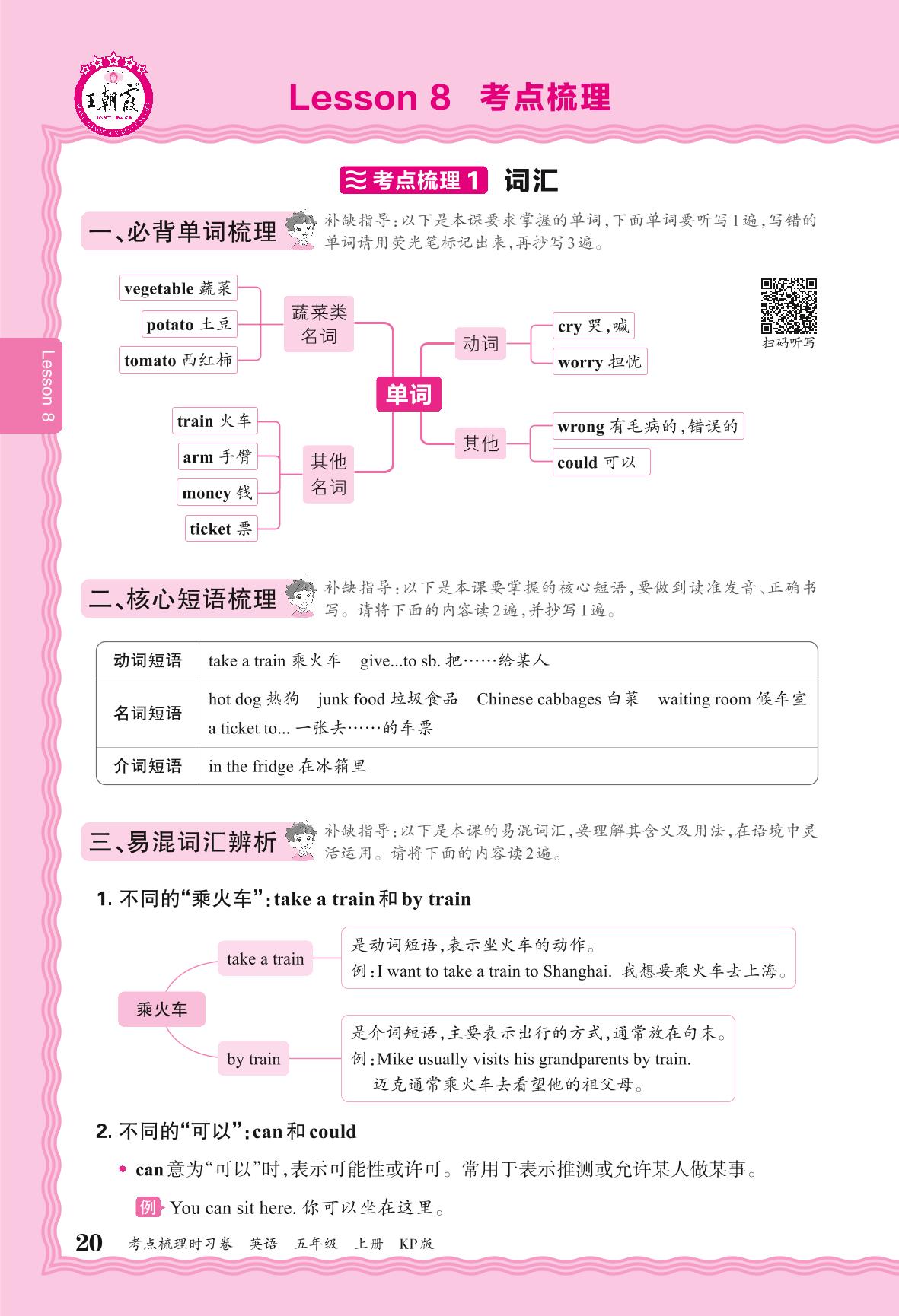 2024秋上册五年级英语科普版 考点梳理补缺手册——Lesson 8