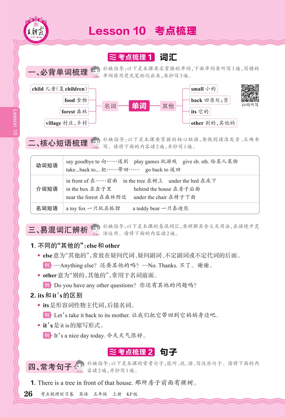 2024秋上册五年级英语科普版 考点梳理补缺手册——Lesson 10