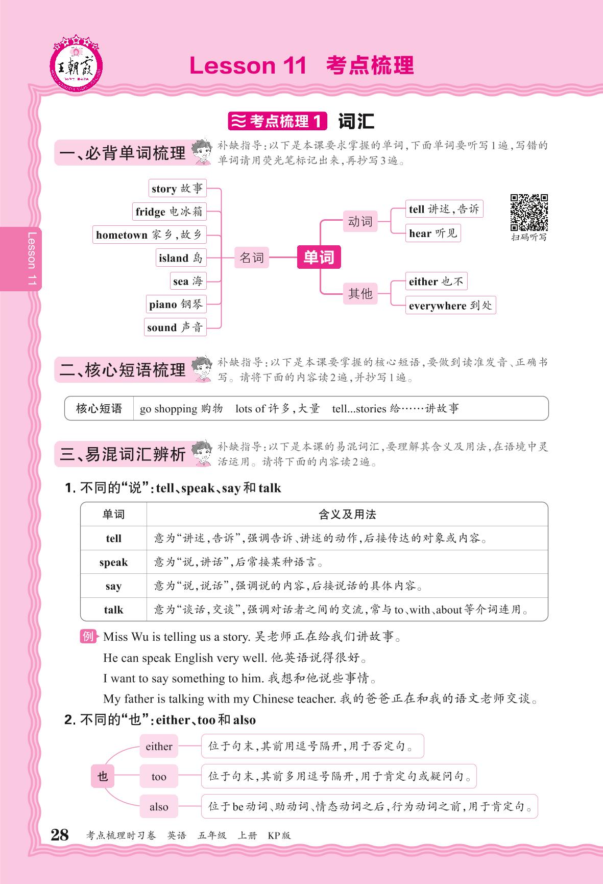 2024秋上册五年级英语科普版 考点梳理补缺手册——Lesson 11