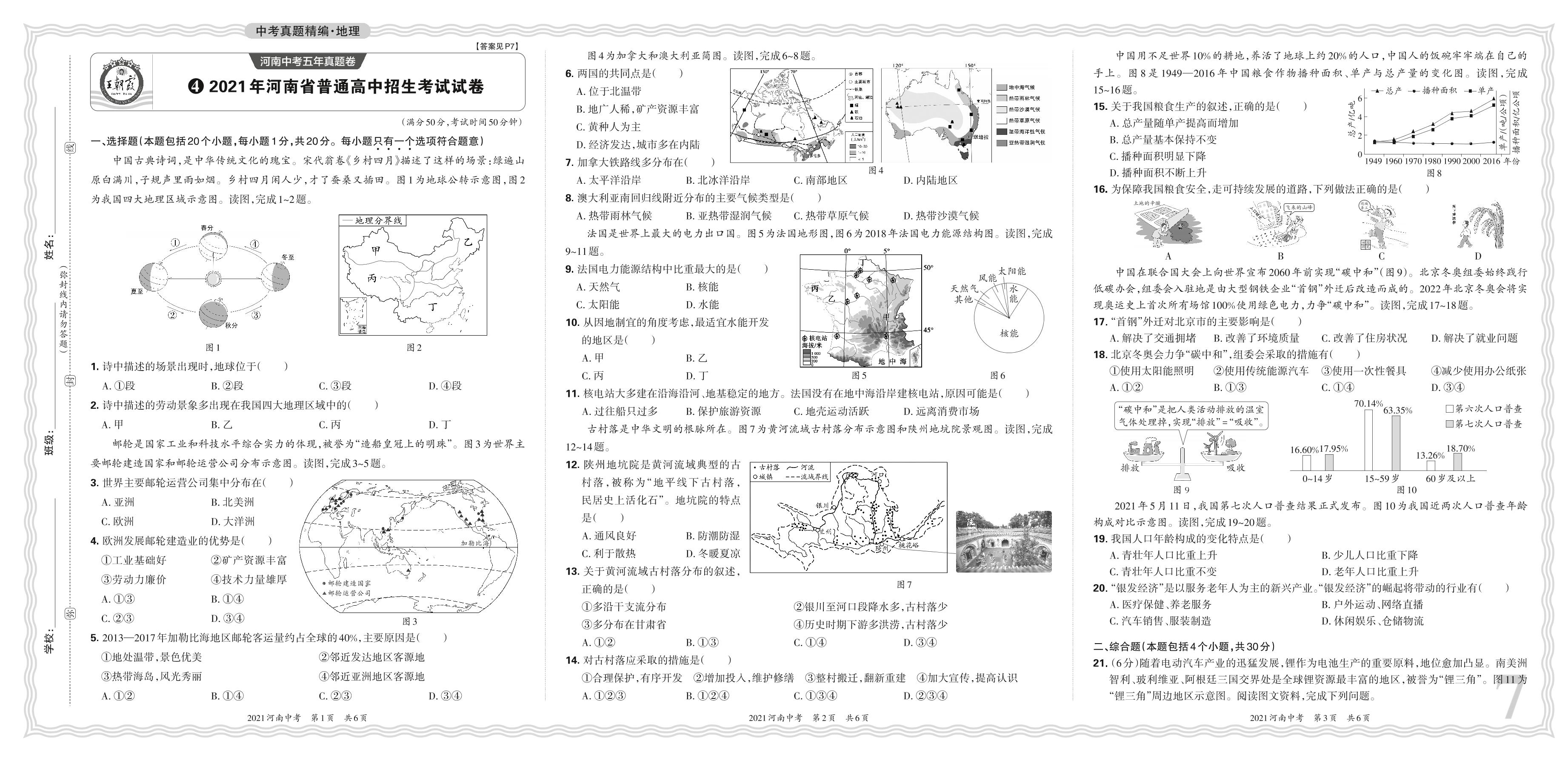中考地理·2021河南省普通高中招生考试试卷【4】