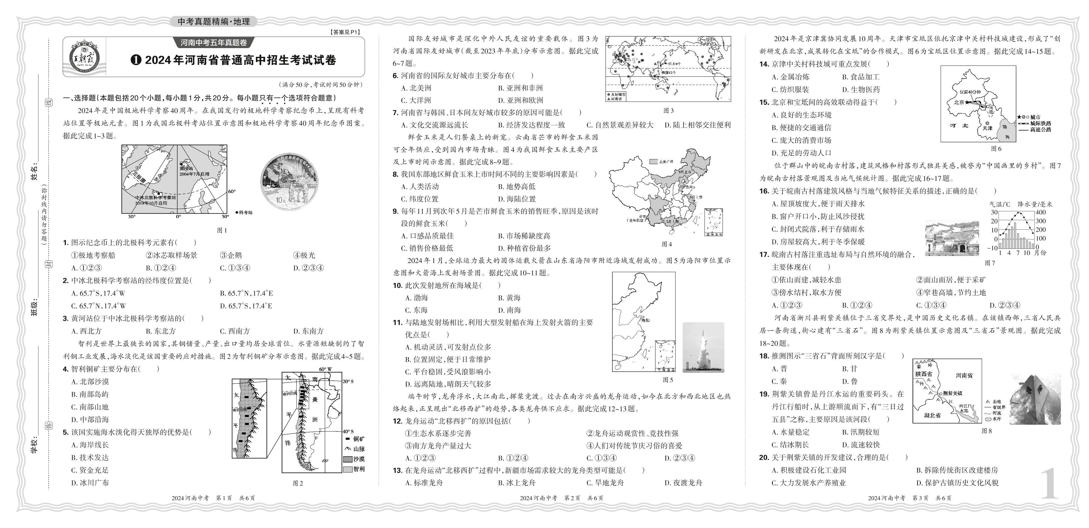 中考地理·2024河南省普通高中招生考试试卷【1】