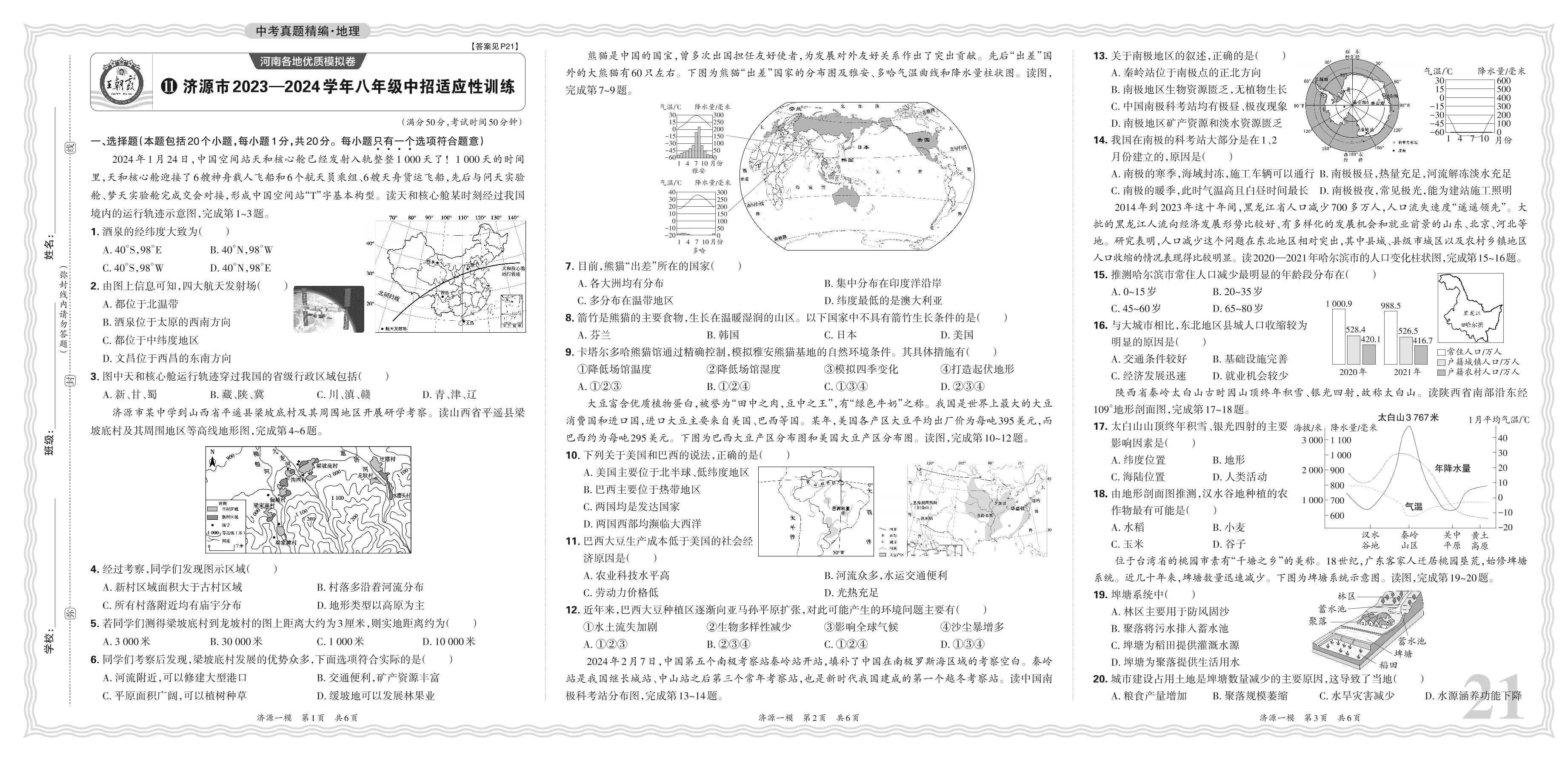 中考地理·河南省济源市2023—2024学年八年级中招适应性训练【11】