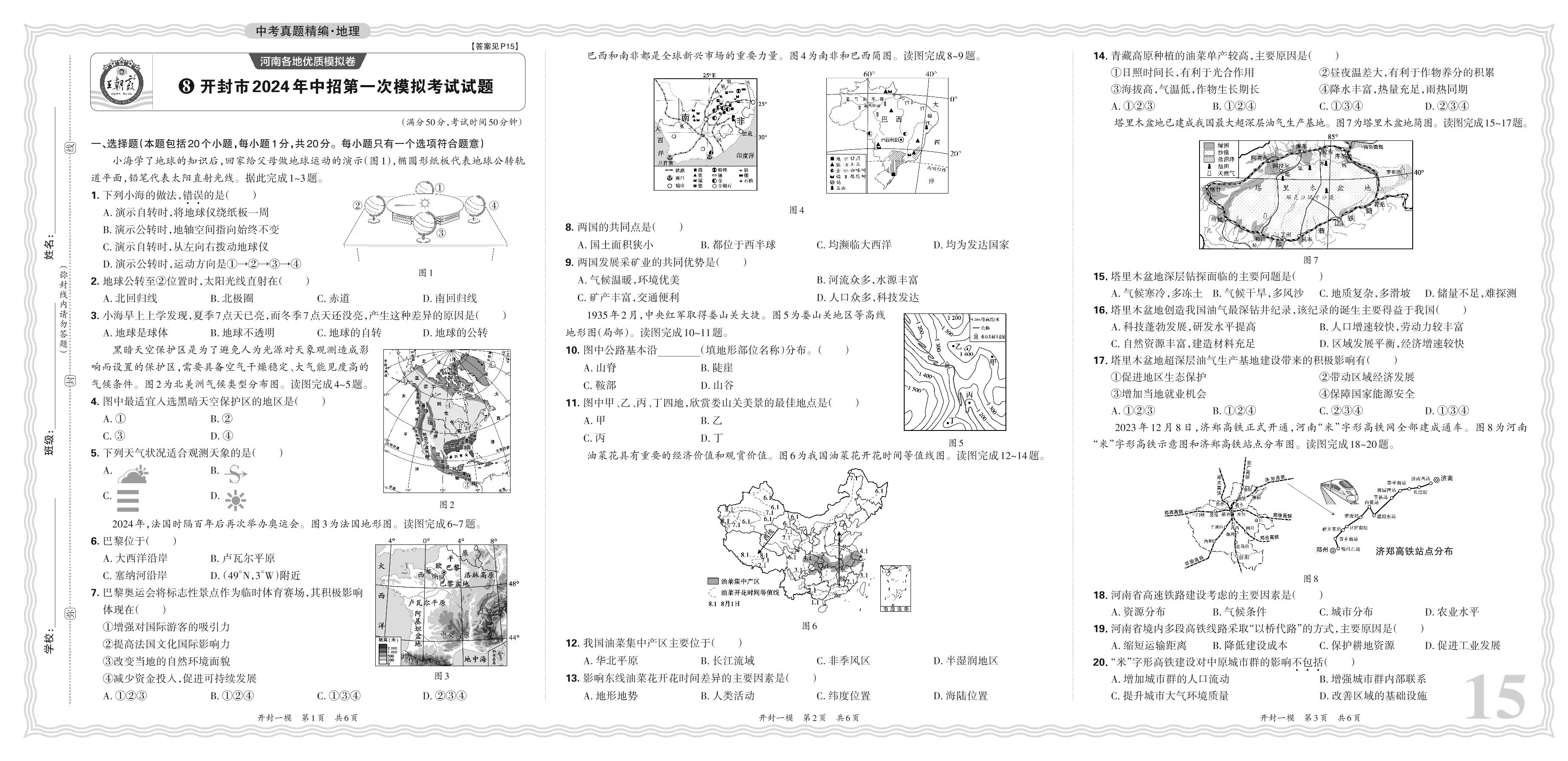 中考地理·河南省开封市2024年中招第一次模拟考试试题【8】