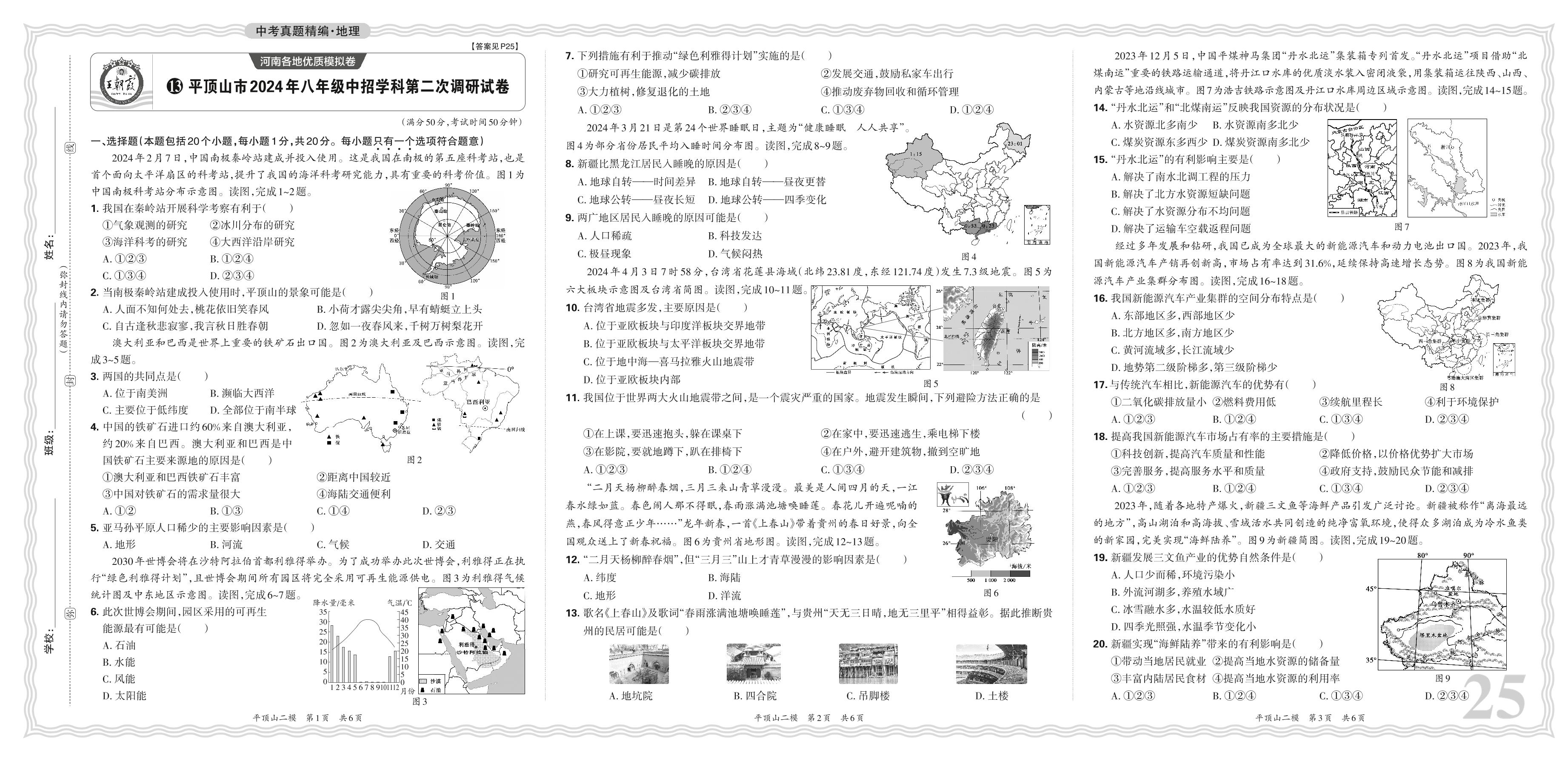 中考地理·河南省平顶山市2024年八年级中招学科第二次调研试卷【13】