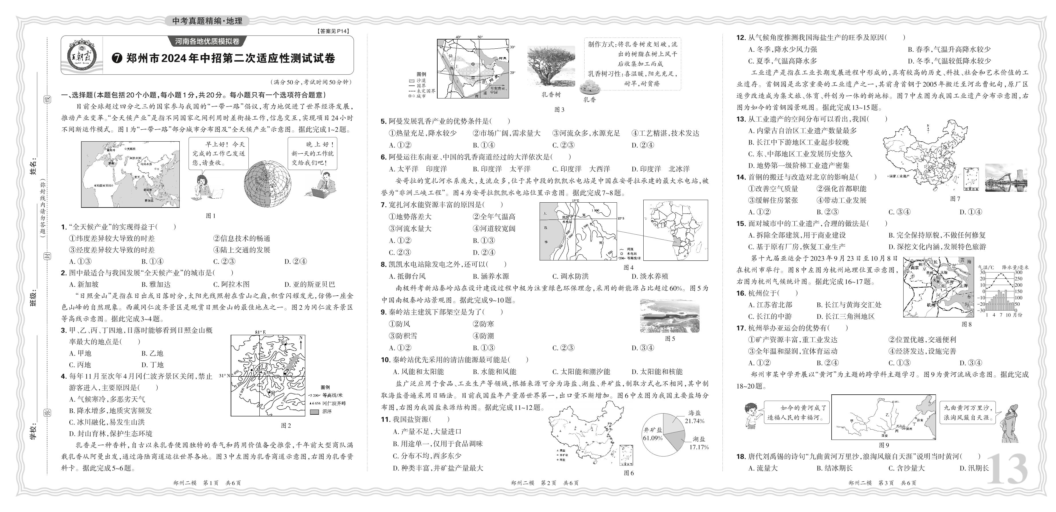 中考地理·河南省郑州市2024年中招第二次适应性测试试卷【7】