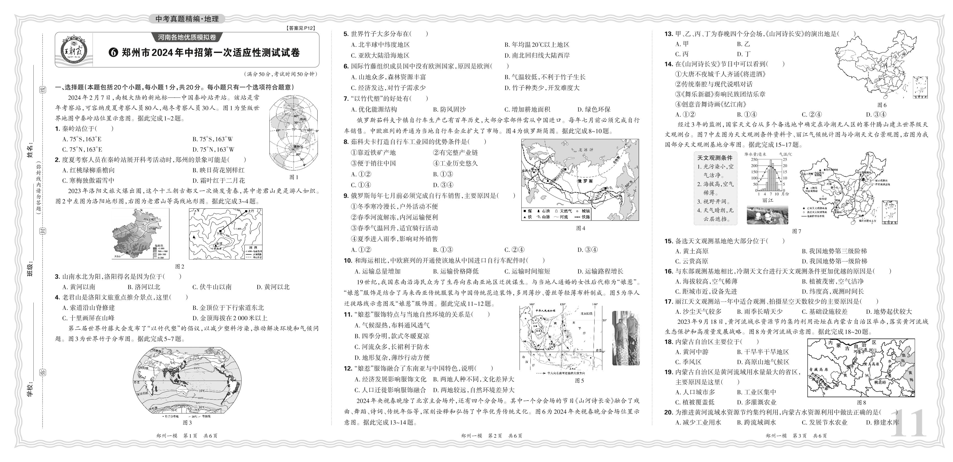 中考地理·河南省郑州市2024年中招第一次适应性测试试卷【6】