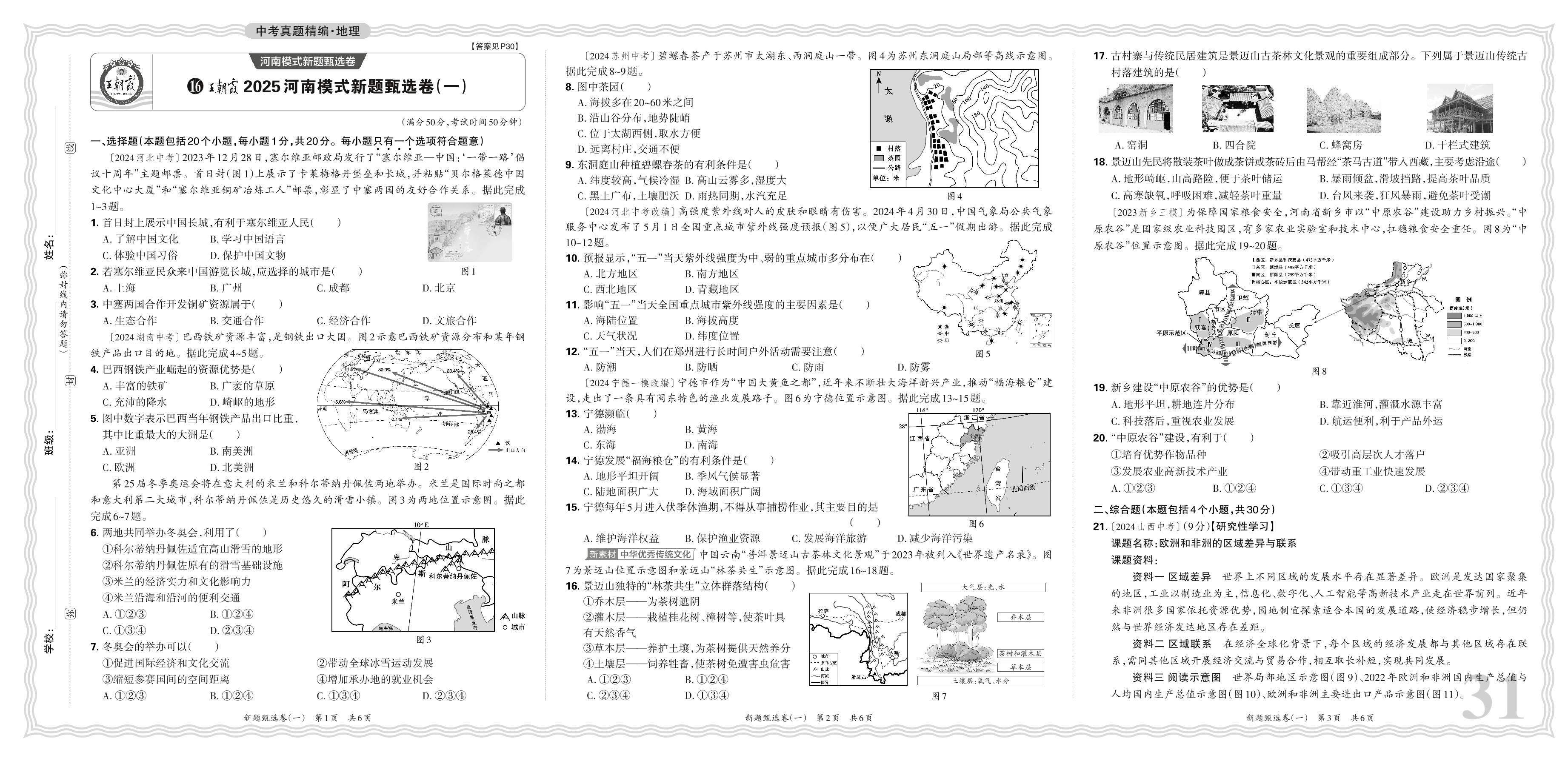 中考地理·王朝霞2025河南模式新题甄选卷(一)【16】