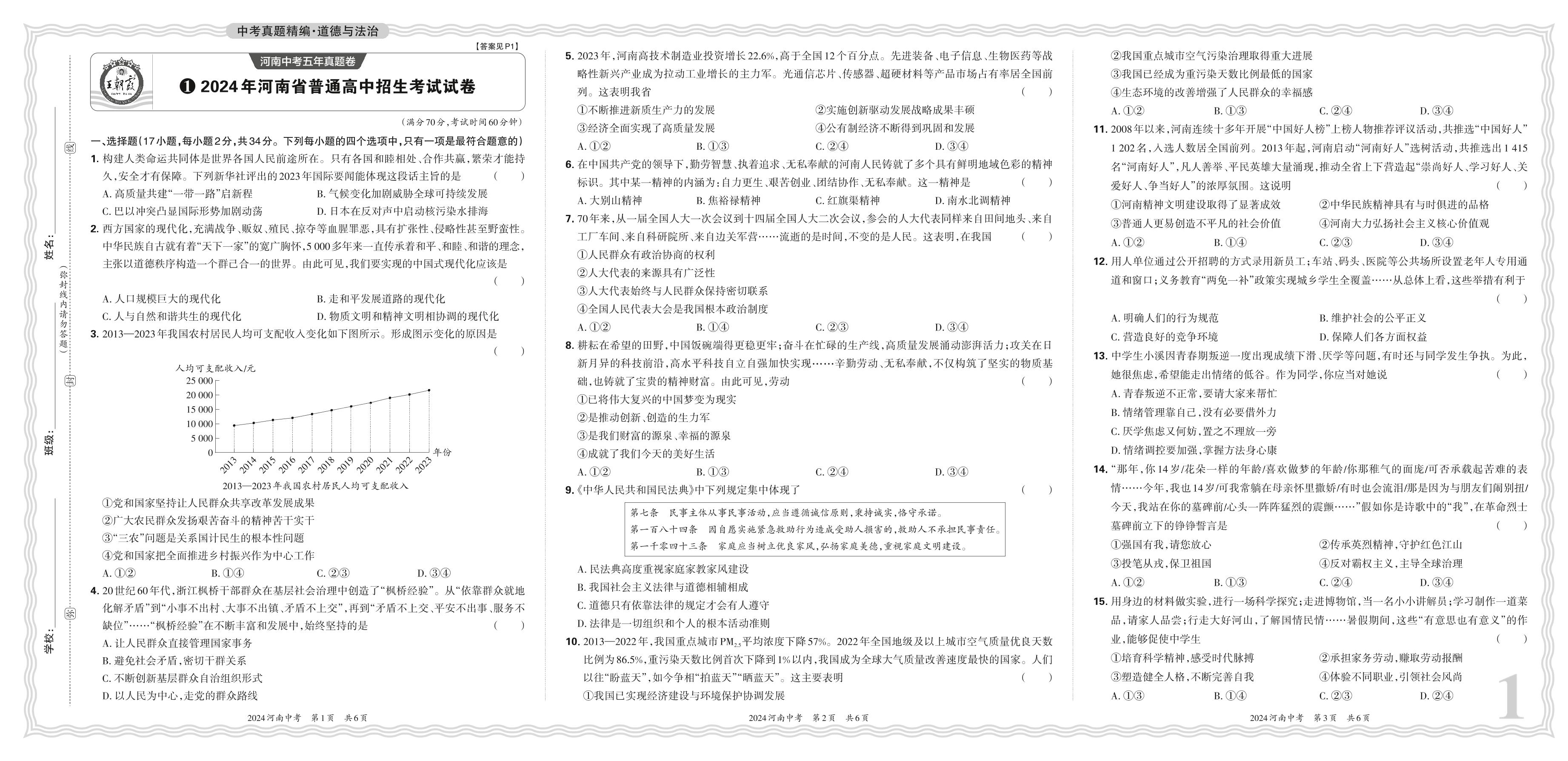 中考道德与法治·2024年河南省普通高中招生考试试卷【1】